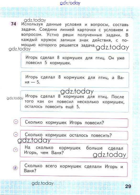 На страницах сайта gdz.today вы найдете учебный и вспомогательный материал, направленный на улучшения знаний школьной программы. ГДЗ - онлайн мир знаний Решение к части 2. Страницы 29 Рабочей тетради по Математике для 2 класса Волкова, Моро Просвещение Школа России 2016