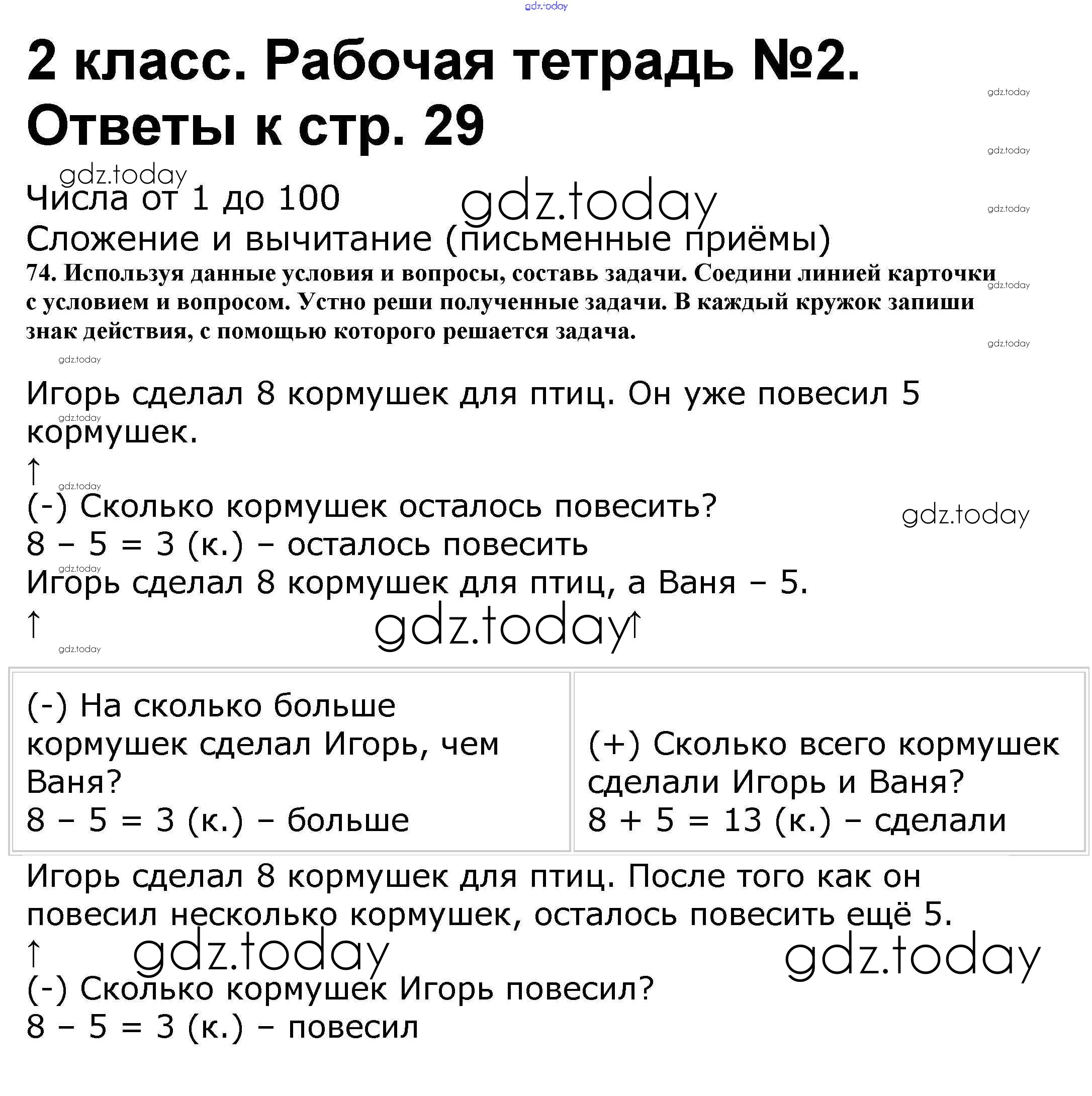 Ответы к Решение к части 2. Страницы 29 Рабочей тетради по Математике для 2 класса Волкова, Моро Просвещение Школа России 2016