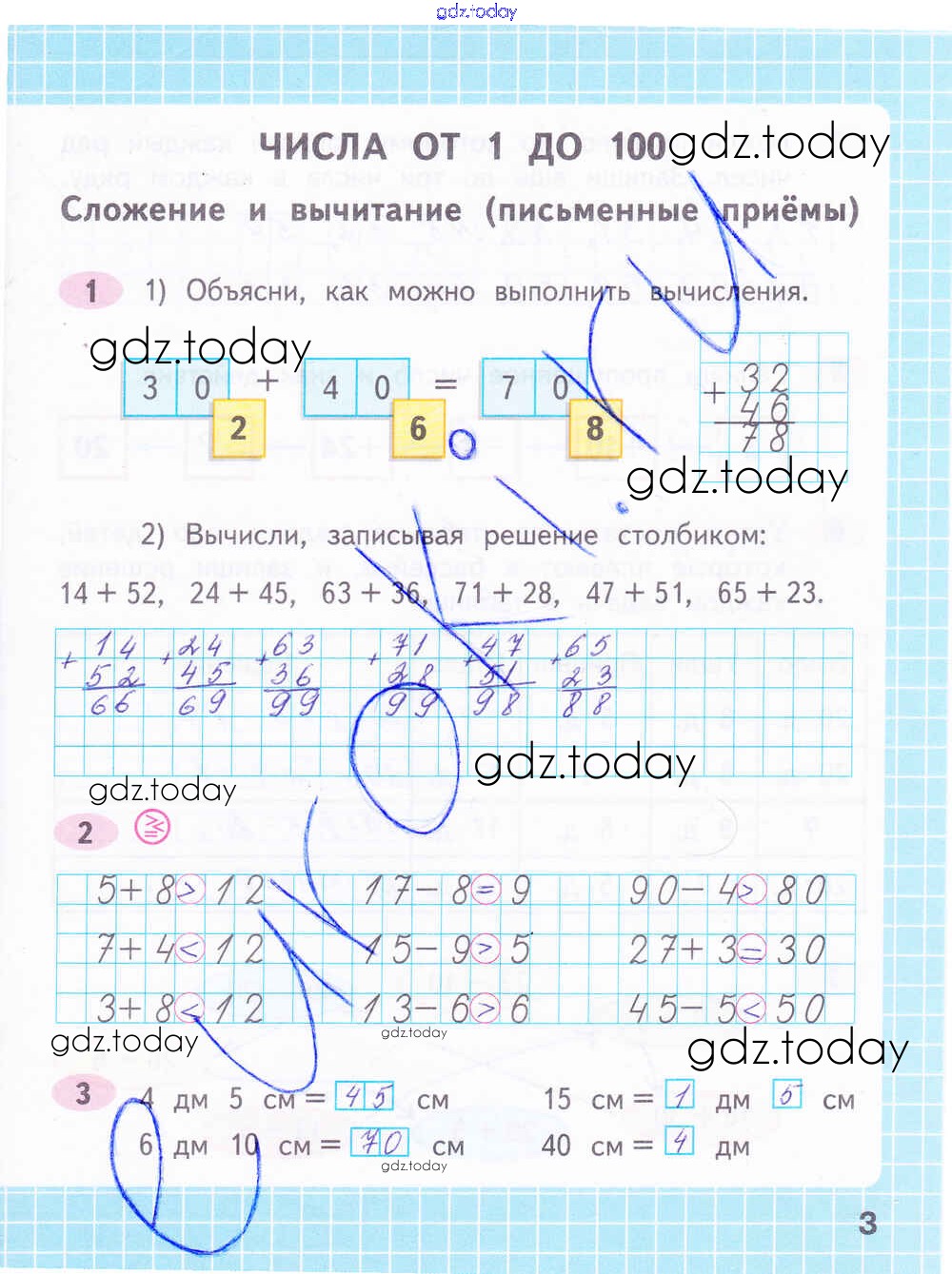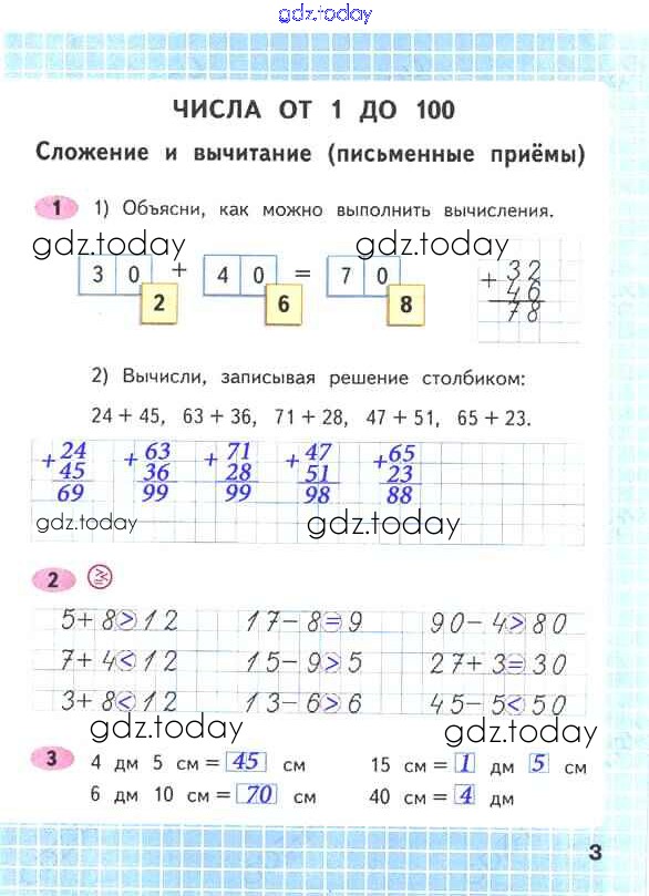 На страницах сайта gdz.today вы найдете учебный и вспомогательный материал, направленный на улучшения знаний школьной программы. ГДЗ - онлайн мир знаний Решение к части 2. Страницы 3 Рабочей тетради по Математике для 2 класса Волкова, Моро Просвещение Школа России 2016