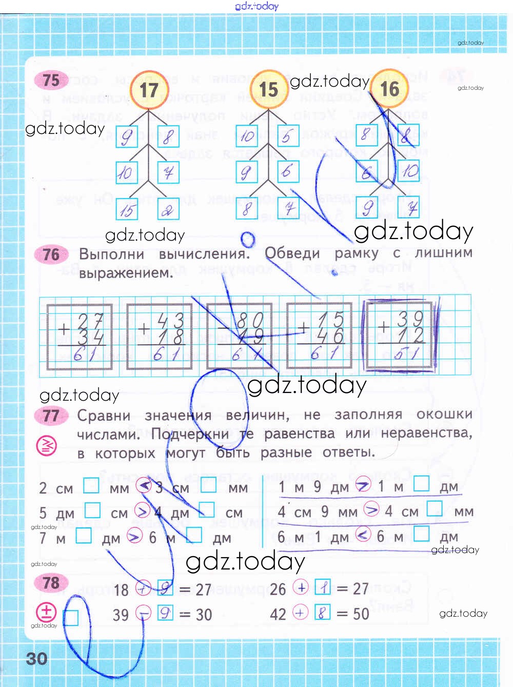 На страницах сайта gdz.today вы найдете учебный и вспомогательный материал, направленный на улучшения знаний школьной программы. ГДЗ - онлайн мир знаний Решение к части 2. Страницы 30 Рабочей тетради по Математике для 2 класса Волкова, Моро Просвещение Школа России 2016