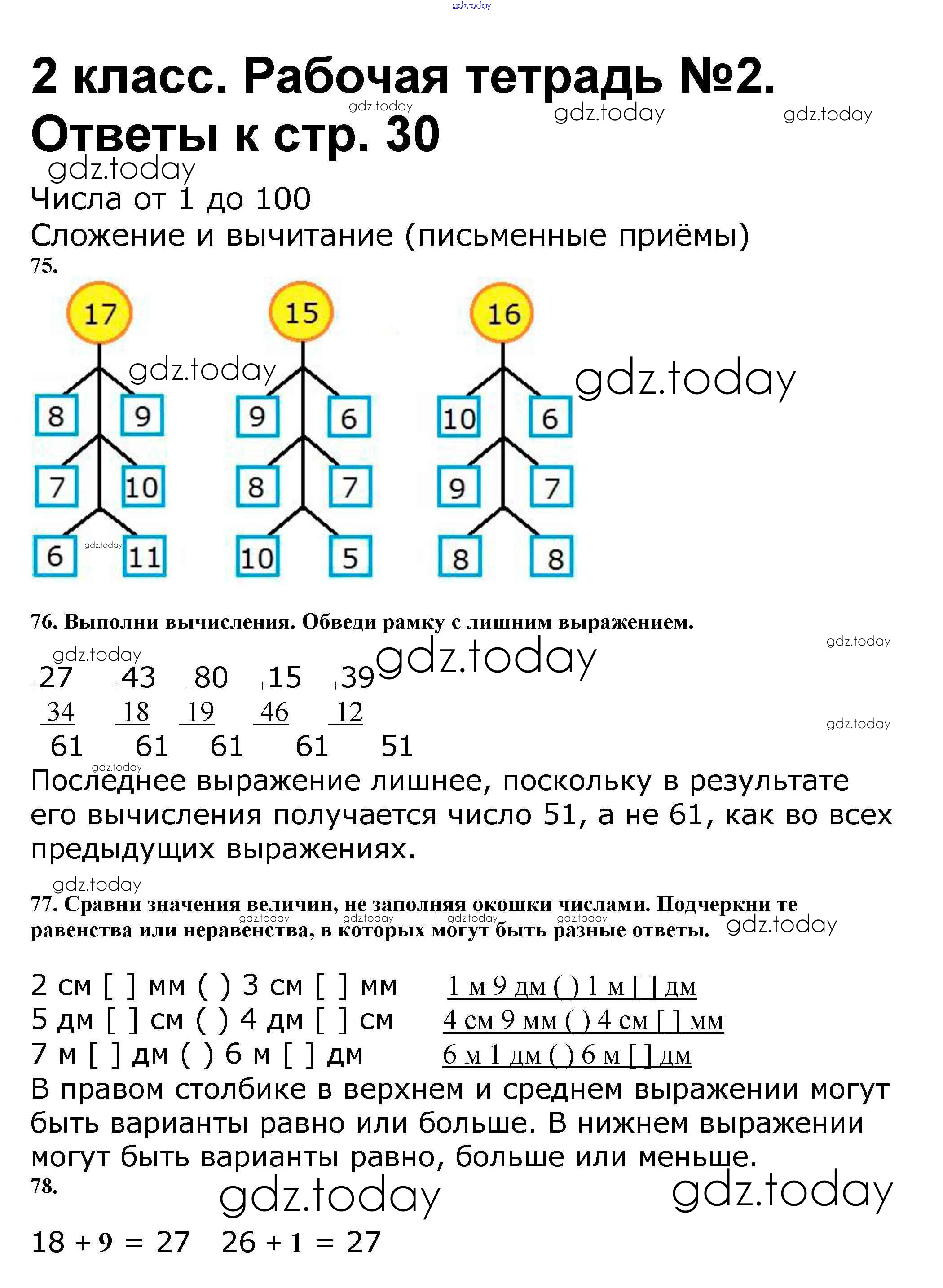 Ответы к Решение к части 2. Страницы 30 Рабочей тетради по Математике для 2 класса Волкова, Моро Просвещение Школа России 2016