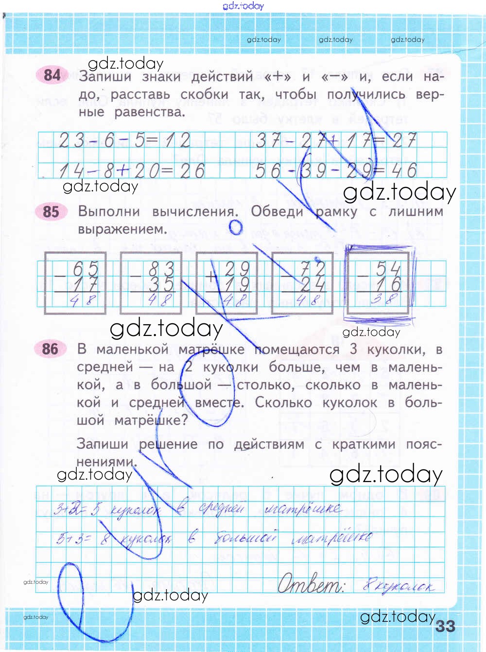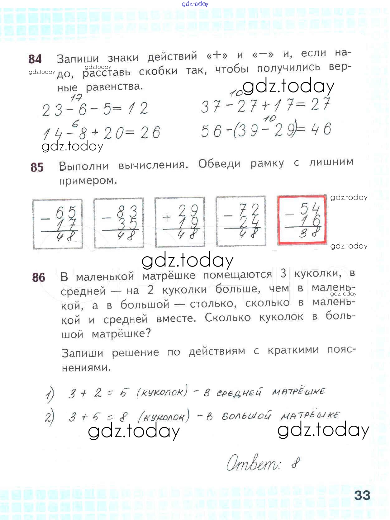 Ответы к Решение к части 2. Страницы 33 Рабочей тетради по Математике для 2 класса Волкова, Моро Просвещение Школа России 2016