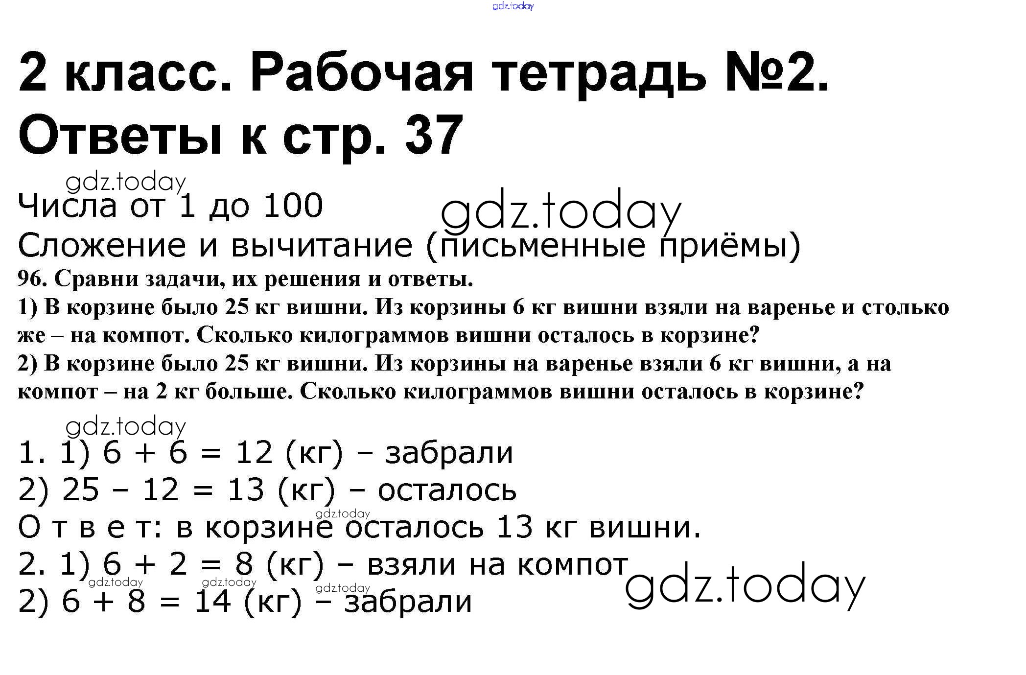 Ответы к Решение к части 2. Страницы 37 Рабочей тетради по Математике для 2 класса Волкова, Моро Просвещение Школа России 2016