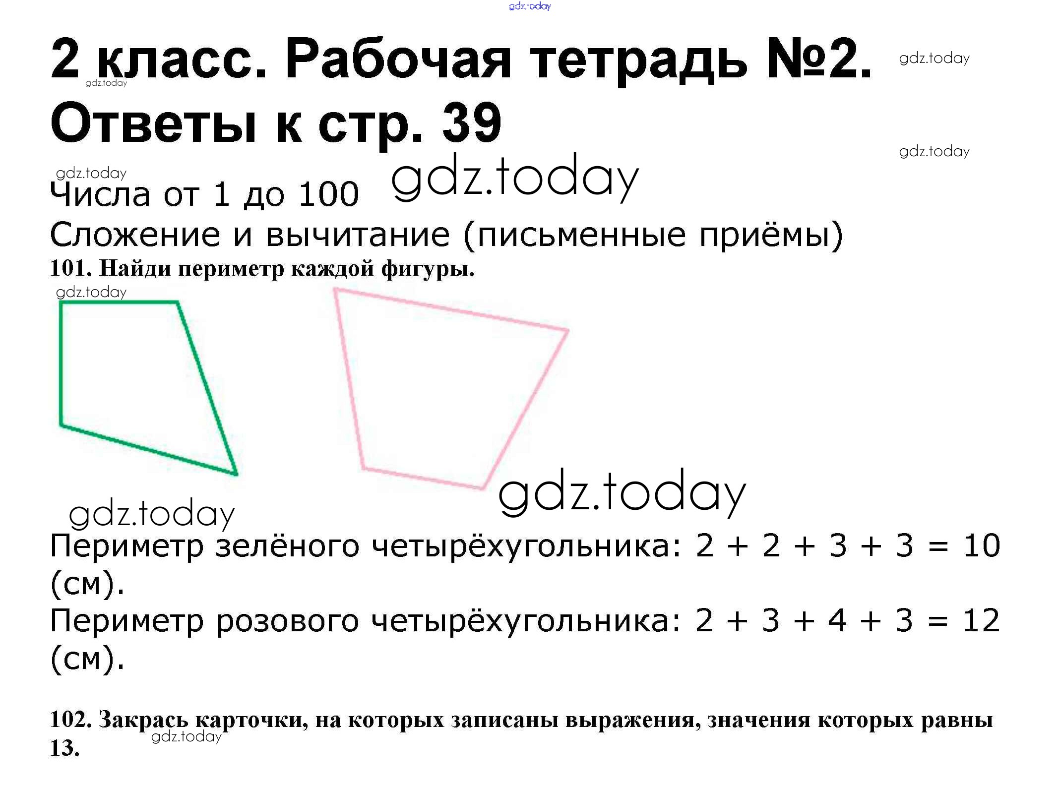 Ответы к Решение к части 2. Страницы 39 Рабочей тетради по Математике для 2 класса Волкова, Моро Просвещение Школа России 2016