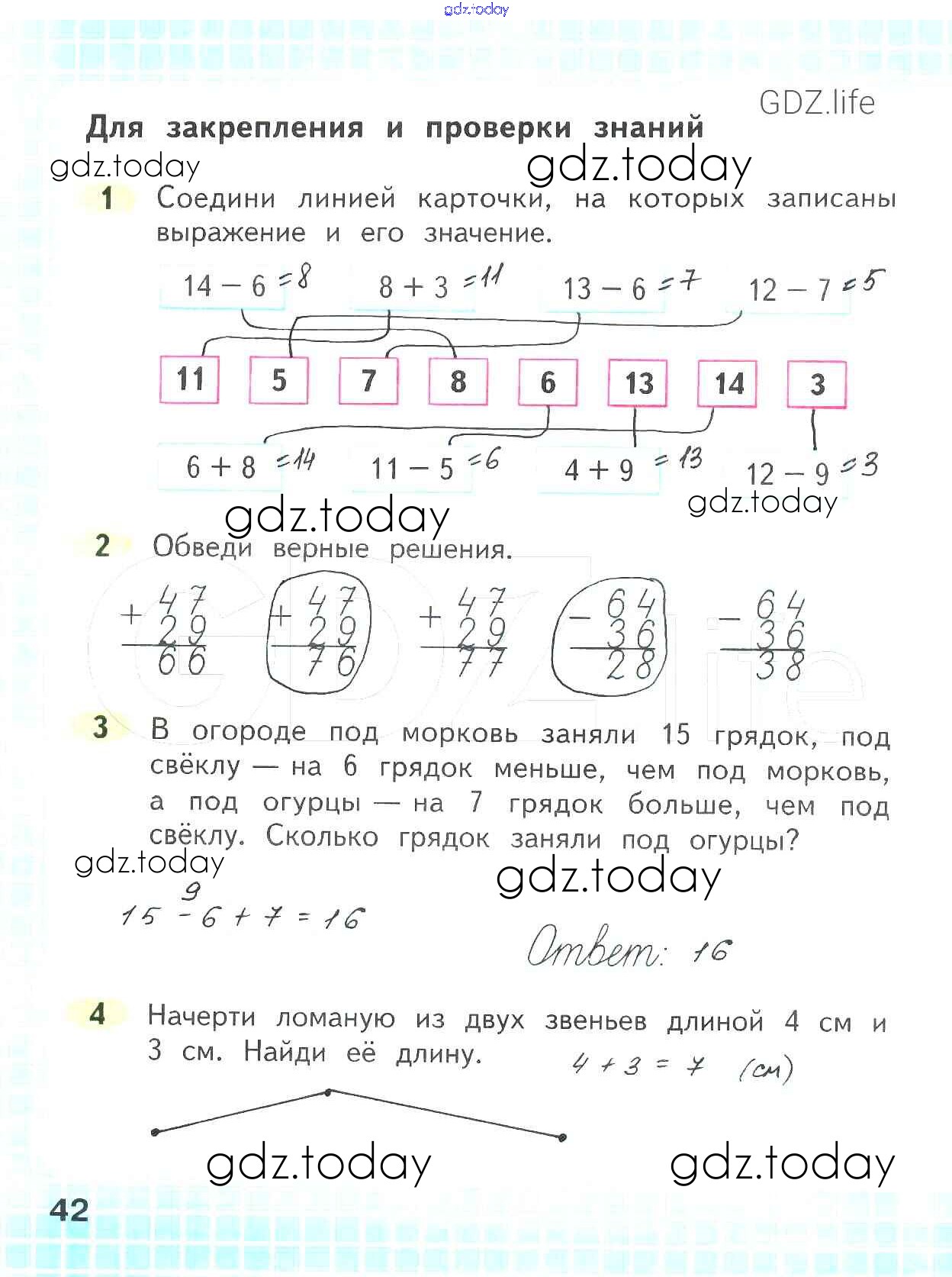 На страницах сайта gdz.today вы найдете учебный и вспомогательный материал, направленный на улучшения знаний школьной программы. ГДЗ - онлайн мир знаний Решение к части 2. Страницы 42 Рабочей тетради по Математике для 2 класса Волкова, Моро Просвещение Школа России 2016