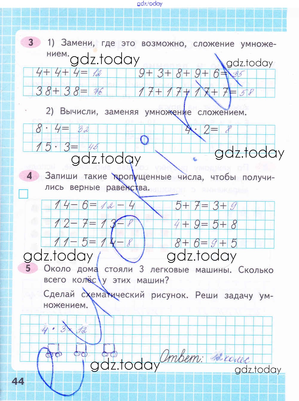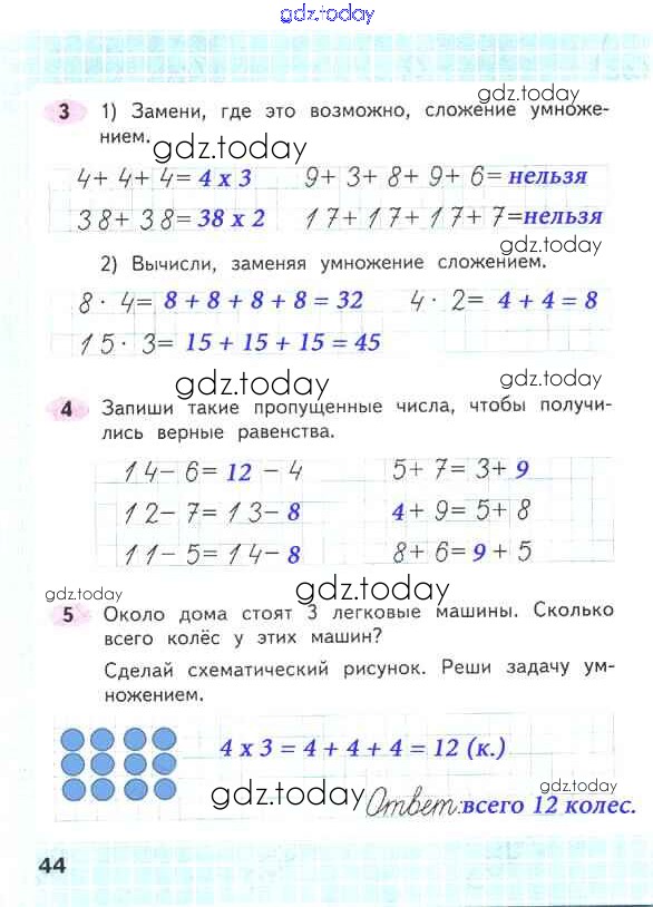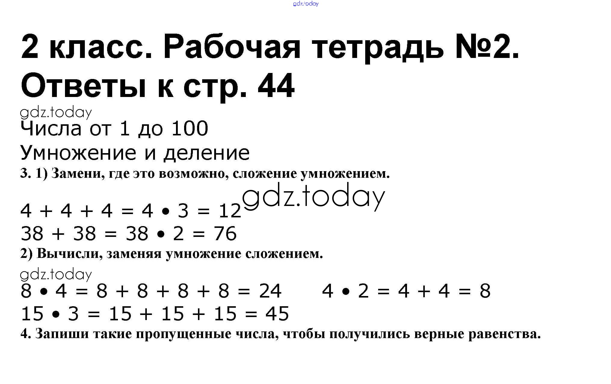 На страницах сайта gdz.today вы найдете учебный и вспомогательный материал, направленный на улучшения знаний школьной программы. ГДЗ - онлайн мир знаний Решение к части 2. Страницы 44 Рабочей тетради по Математике для 2 класса Волкова, Моро Просвещение Школа России 2016