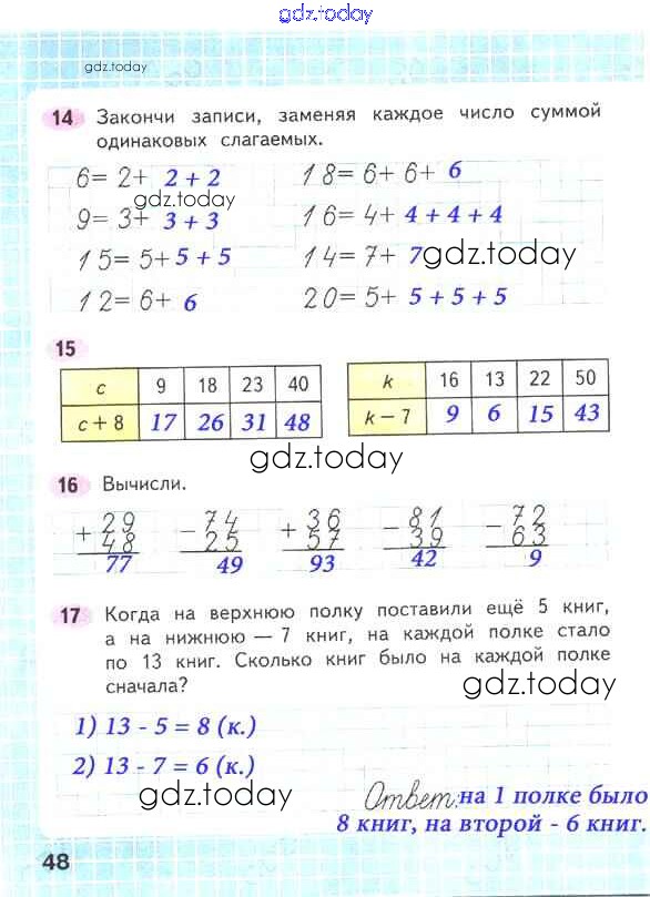 Ответы к Решение к части 2. Страницы 48 Рабочей тетради по Математике для 2 класса Волкова, Моро Просвещение Школа России 2016