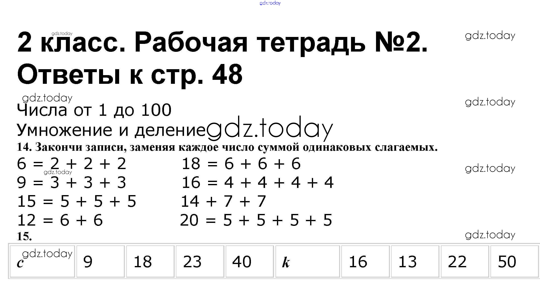 На страницах сайта gdz.today вы найдете учебный и вспомогательный материал, направленный на улучшения знаний школьной программы. ГДЗ - онлайн мир знаний Решение к части 2. Страницы 48 Рабочей тетради по Математике для 2 класса Волкова, Моро Просвещение Школа России 2016