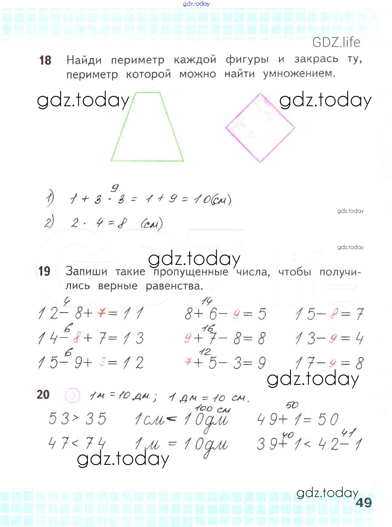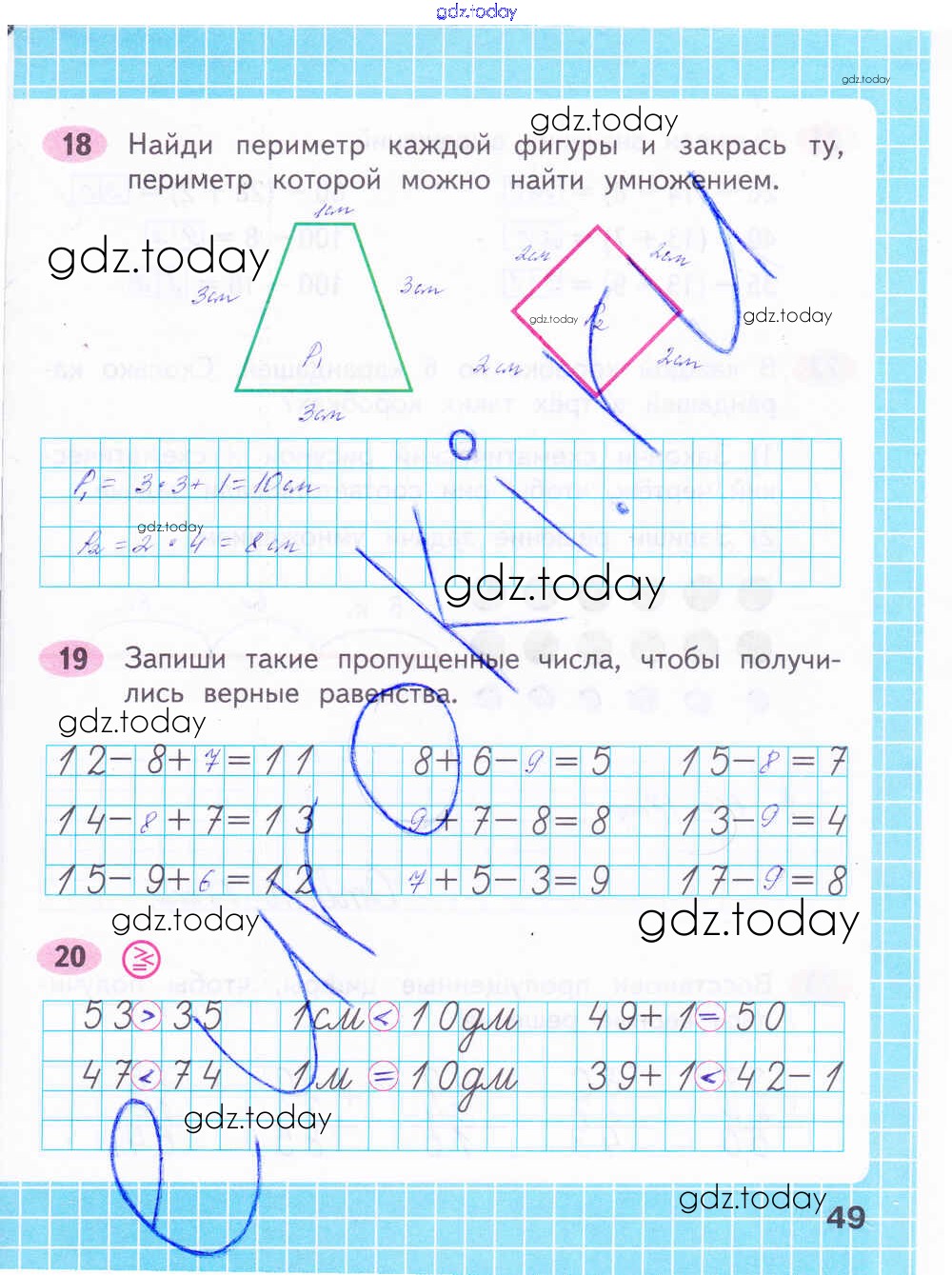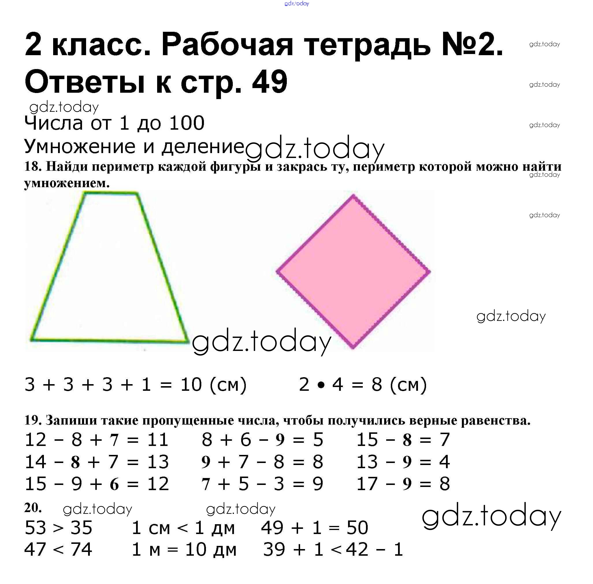 На страницах сайта gdz.today вы найдете учебный и вспомогательный материал, направленный на улучшения знаний школьной программы. ГДЗ - онлайн мир знаний Решение к части 2. Страницы 49 Рабочей тетради по Математике для 2 класса Волкова, Моро Просвещение Школа России 2016