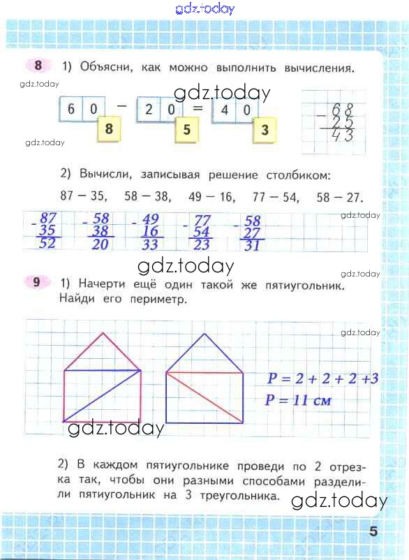 Ответы к Решение к части 2. Страницы 5 Рабочей тетради по Математике для 2 класса Волкова, Моро Просвещение Школа России 2016