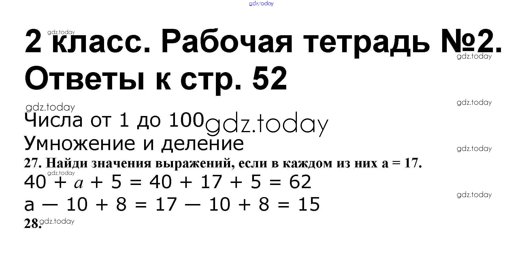 На страницах сайта gdz.today вы найдете учебный и вспомогательный материал, направленный на улучшения знаний школьной программы. ГДЗ - онлайн мир знаний Решение к части 2. Страницы 52 Рабочей тетради по Математике для 2 класса Волкова, Моро Просвещение Школа России 2016