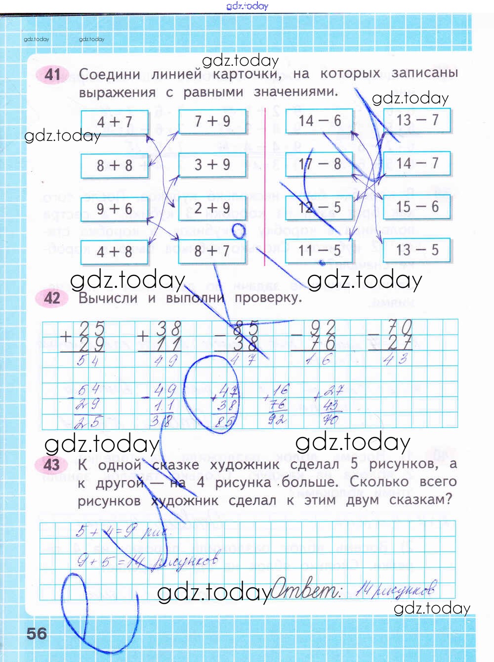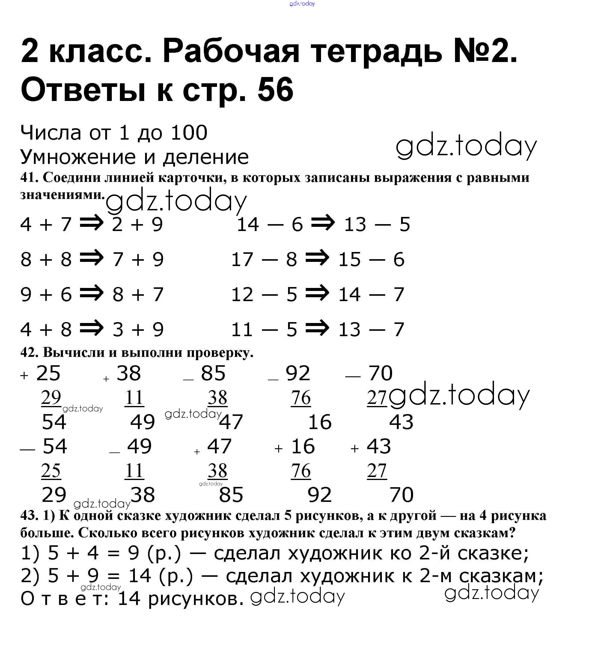 Ответы к Решение к части 2. Страницы 56 Рабочей тетради по Математике для 2 класса Волкова, Моро Просвещение Школа России 2016