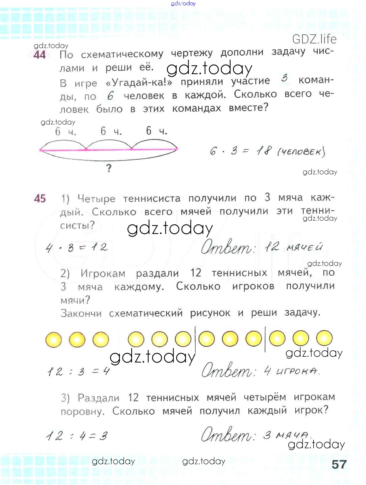 На страницах сайта gdz.today вы найдете учебный и вспомогательный материал, направленный на улучшения знаний школьной программы. ГДЗ - онлайн мир знаний Решение к части 2. Страницы 57 Рабочей тетради по Математике для 2 класса Волкова, Моро Просвещение Школа России 2016