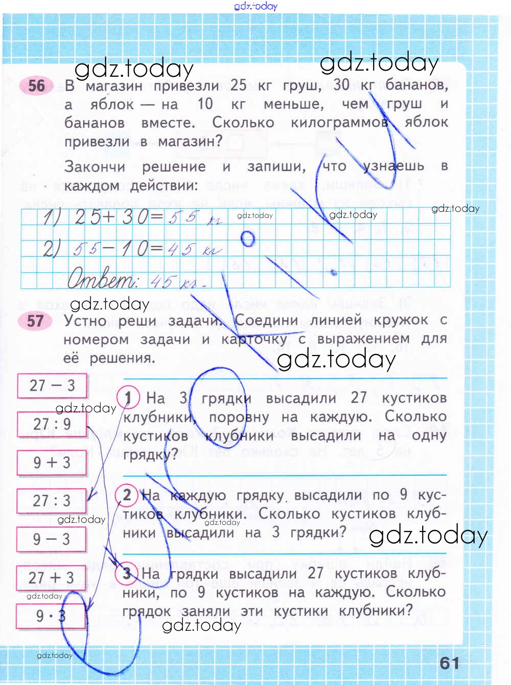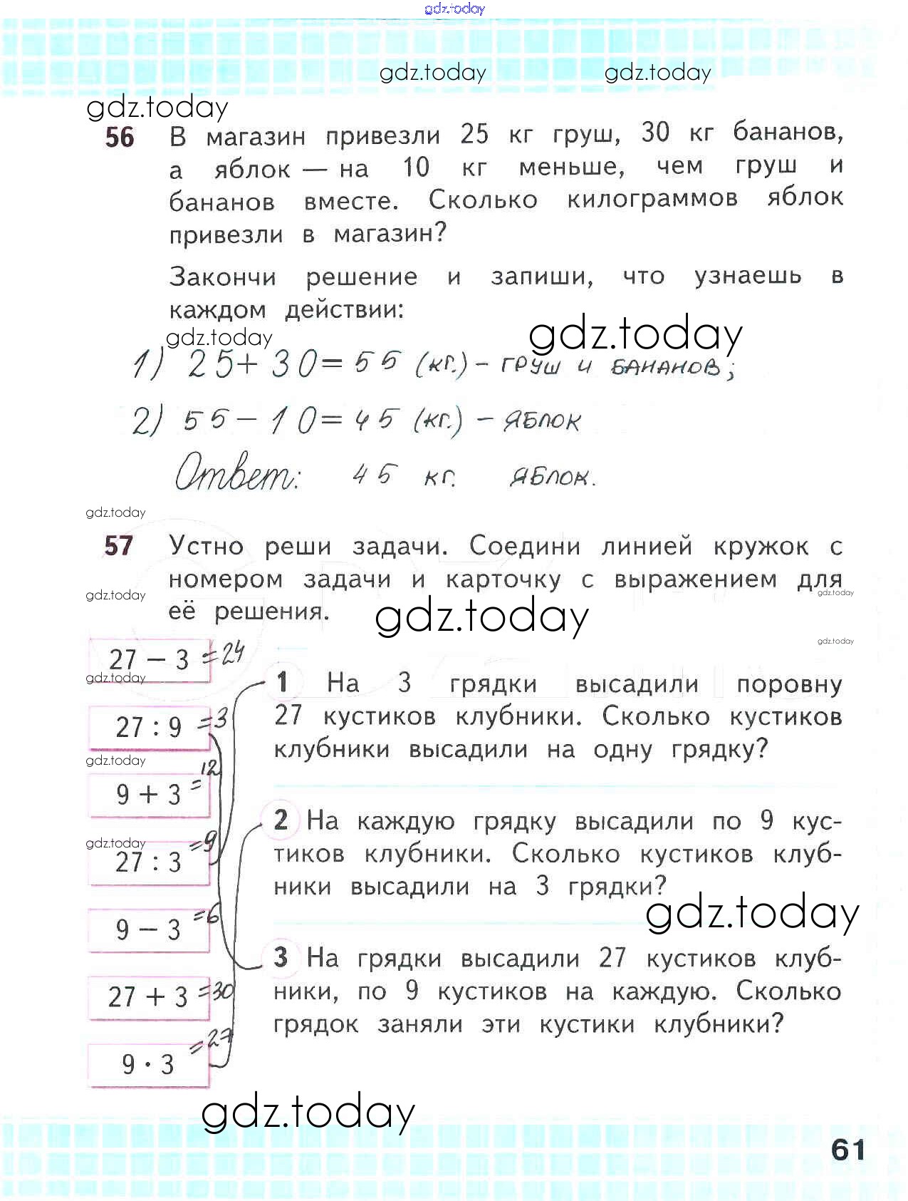 На страницах сайта gdz.today вы найдете учебный и вспомогательный материал, направленный на улучшения знаний школьной программы. ГДЗ - онлайн мир знаний Решение к части 2. Страницы 61 Рабочей тетради по Математике для 2 класса Волкова, Моро Просвещение Школа России 2016