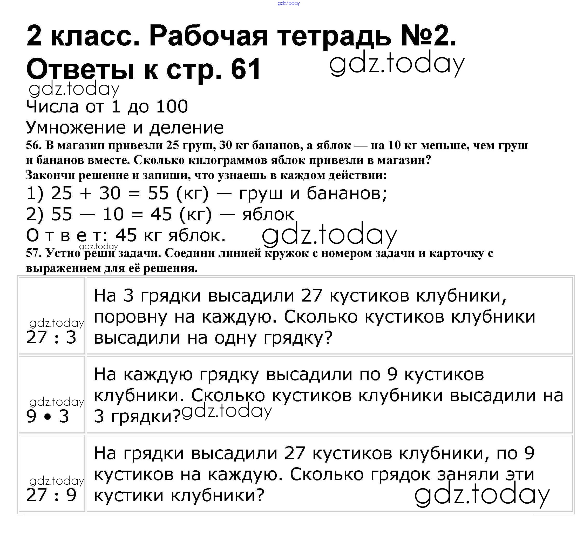 Ответы к Решение к части 2. Страницы 61 Рабочей тетради по Математике для 2 класса Волкова, Моро Просвещение Школа России 2016
