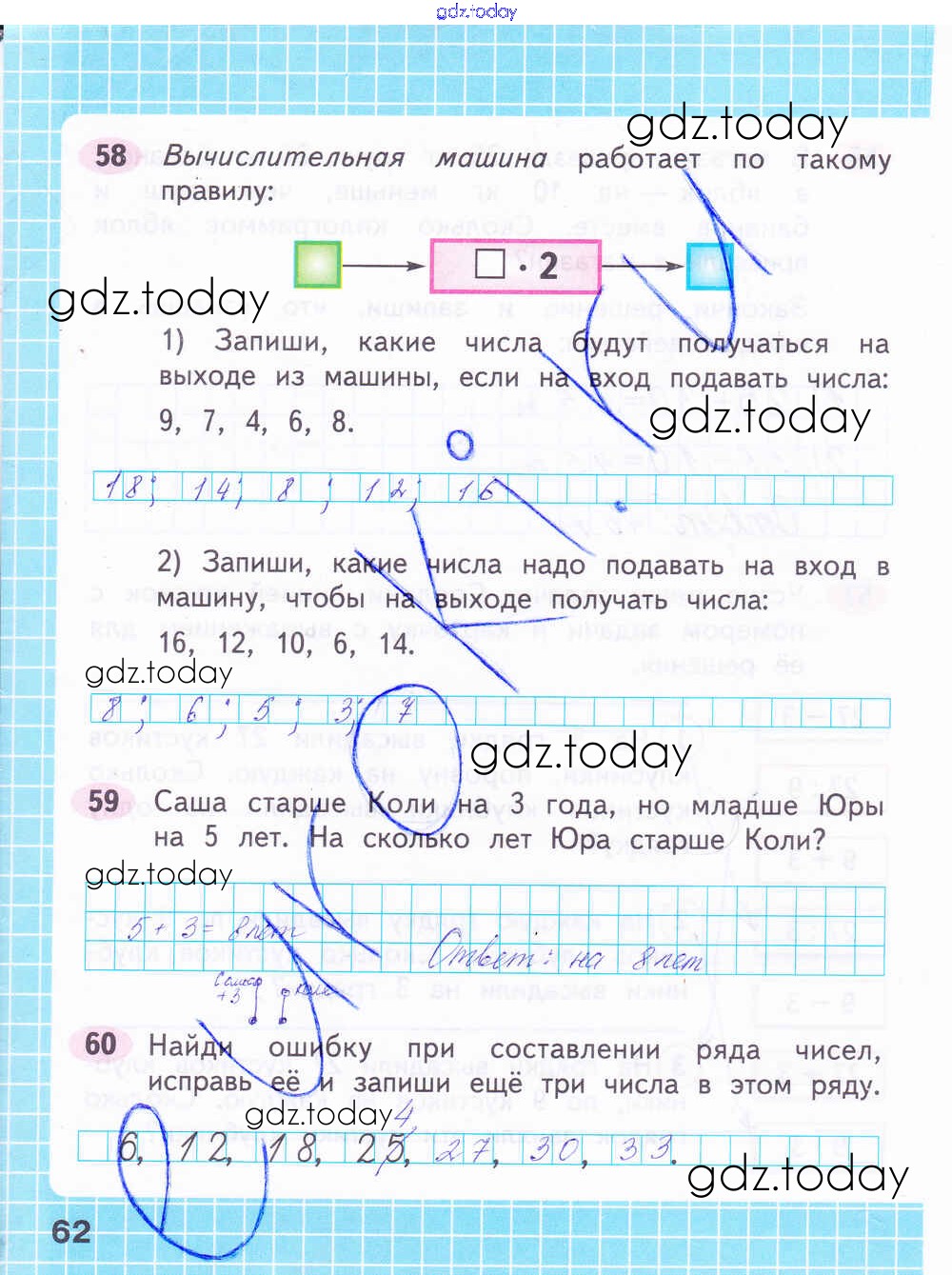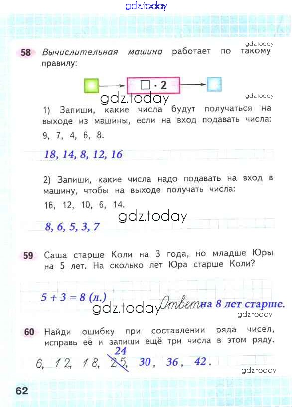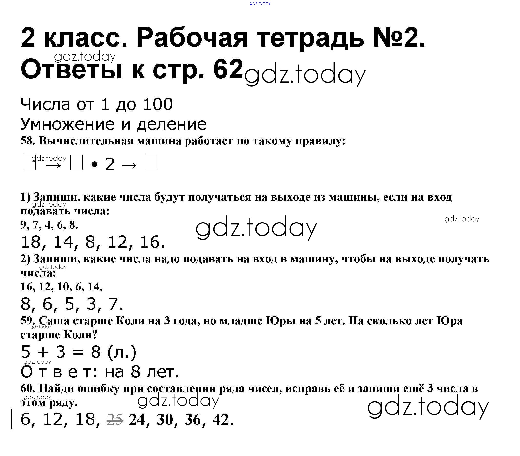 На страницах сайта gdz.today вы найдете учебный и вспомогательный материал, направленный на улучшения знаний школьной программы. ГДЗ - онлайн мир знаний Решение к части 2. Страницы 62 Рабочей тетради по Математике для 2 класса Волкова, Моро Просвещение Школа России 2016