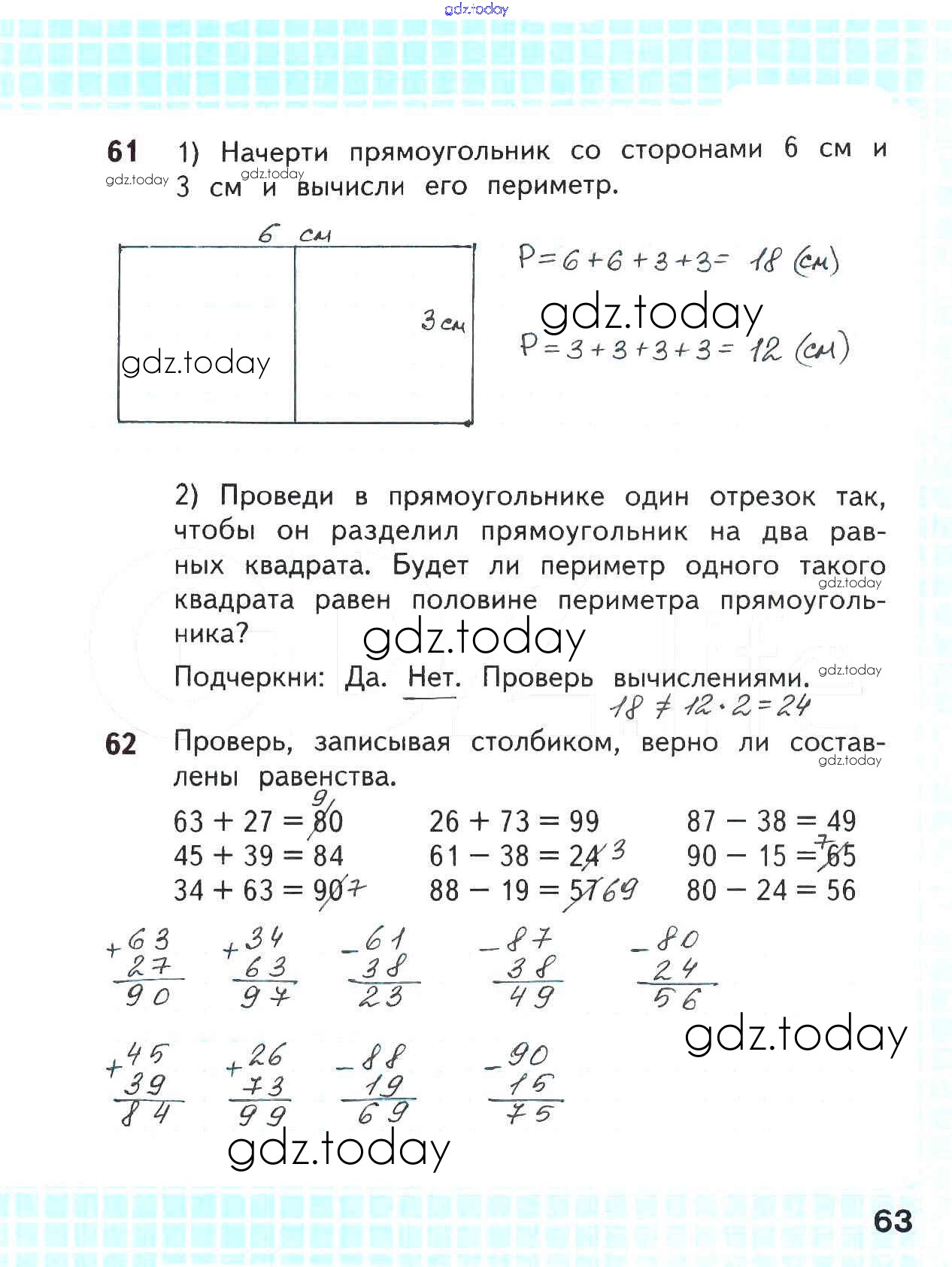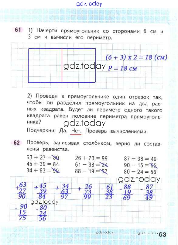 На страницах сайта gdz.today вы найдете учебный и вспомогательный материал, направленный на улучшения знаний школьной программы. ГДЗ - онлайн мир знаний Решение к части 2. Страницы 63 Рабочей тетради по Математике для 2 класса Волкова, Моро Просвещение Школа России 2016