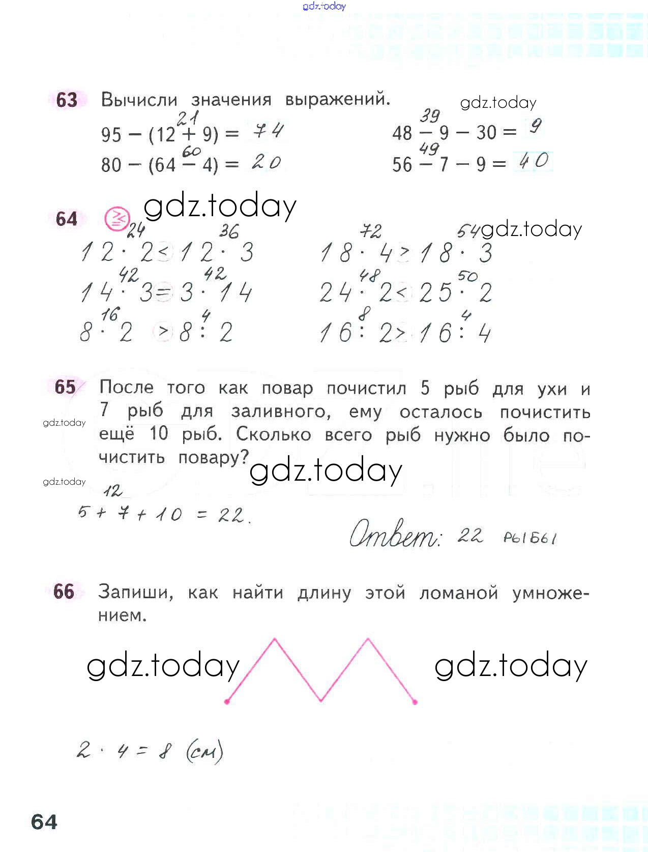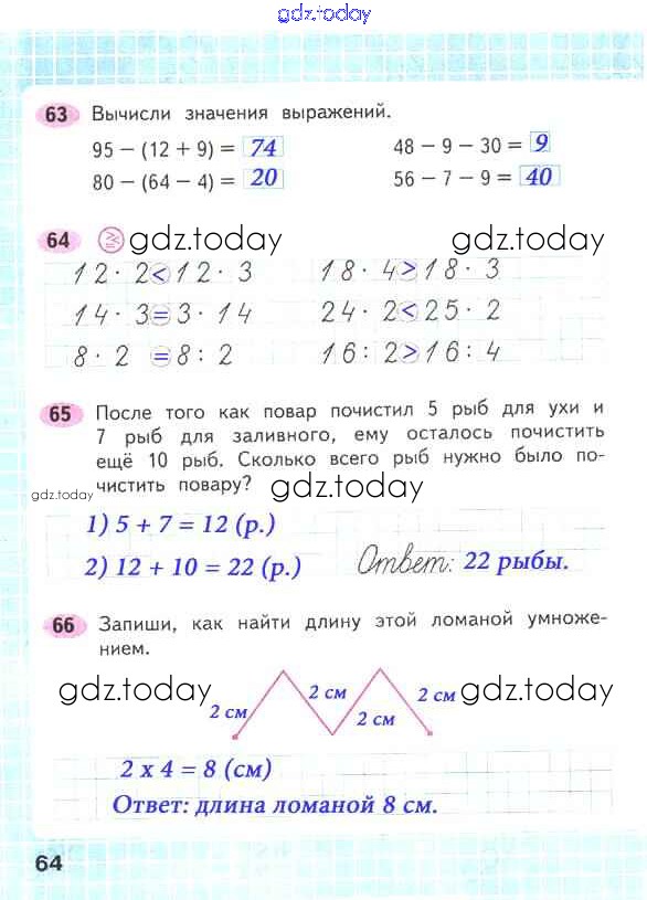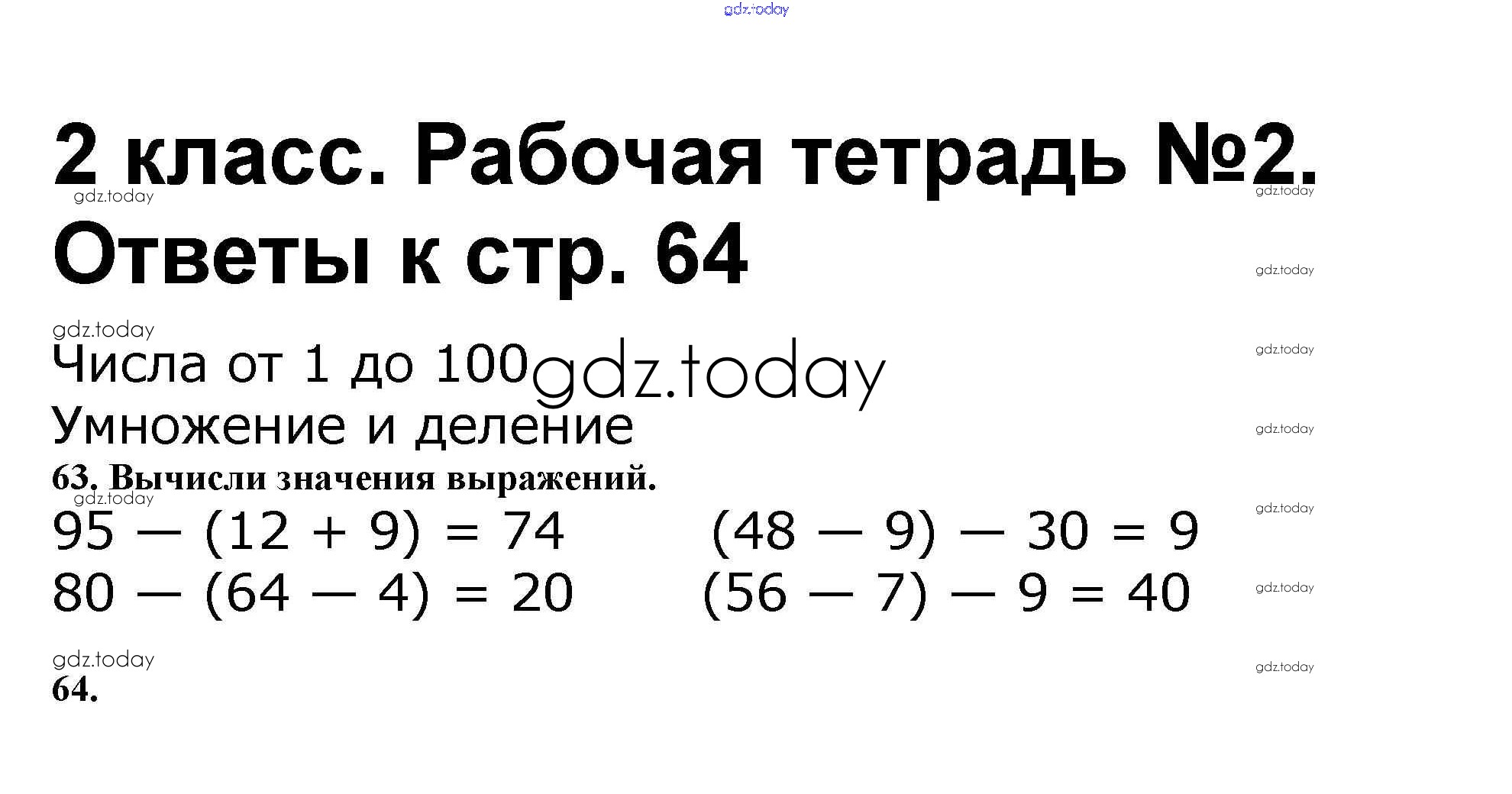 На страницах сайта gdz.today вы найдете учебный и вспомогательный материал, направленный на улучшения знаний школьной программы. ГДЗ - онлайн мир знаний Решение к части 2. Страницы 64 Рабочей тетради по Математике для 2 класса Волкова, Моро Просвещение Школа России 2016