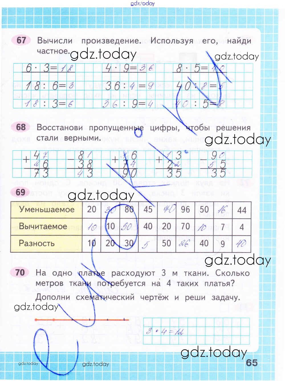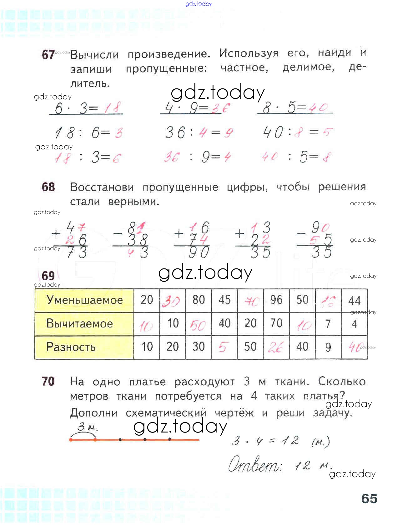 На страницах сайта gdz.today вы найдете учебный и вспомогательный материал, направленный на улучшения знаний школьной программы. ГДЗ - онлайн мир знаний Решение к части 2. Страницы 65 Рабочей тетради по Математике для 2 класса Волкова, Моро Просвещение Школа России 2016