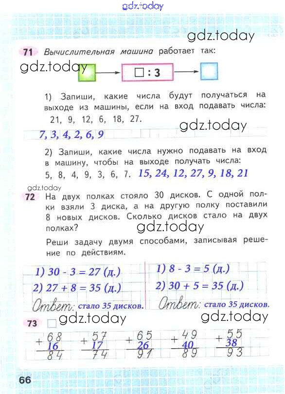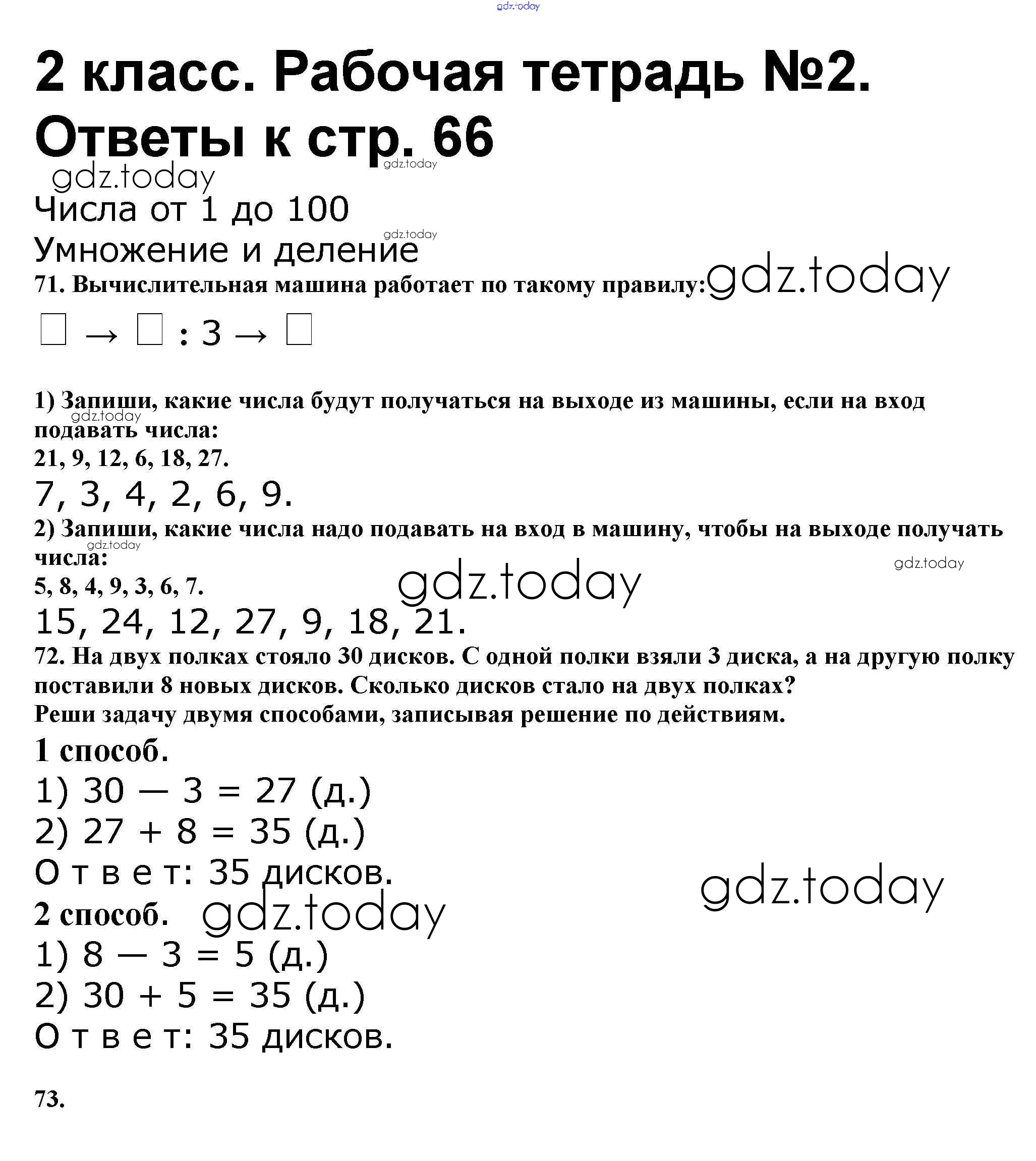На страницах сайта gdz.today вы найдете учебный и вспомогательный материал, направленный на улучшения знаний школьной программы. ГДЗ - онлайн мир знаний Решение к части 2. Страницы 66 Рабочей тетради по Математике для 2 класса Волкова, Моро Просвещение Школа России 2016