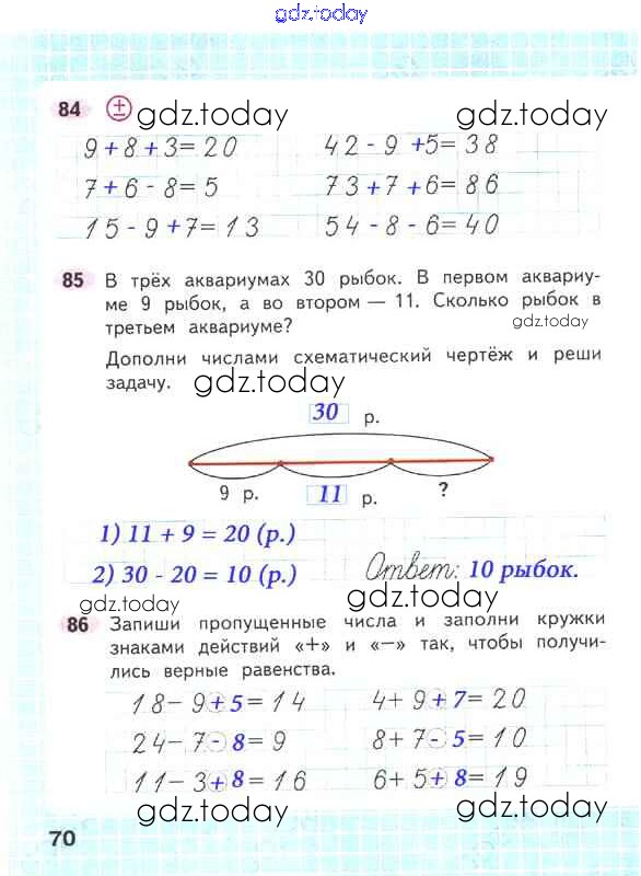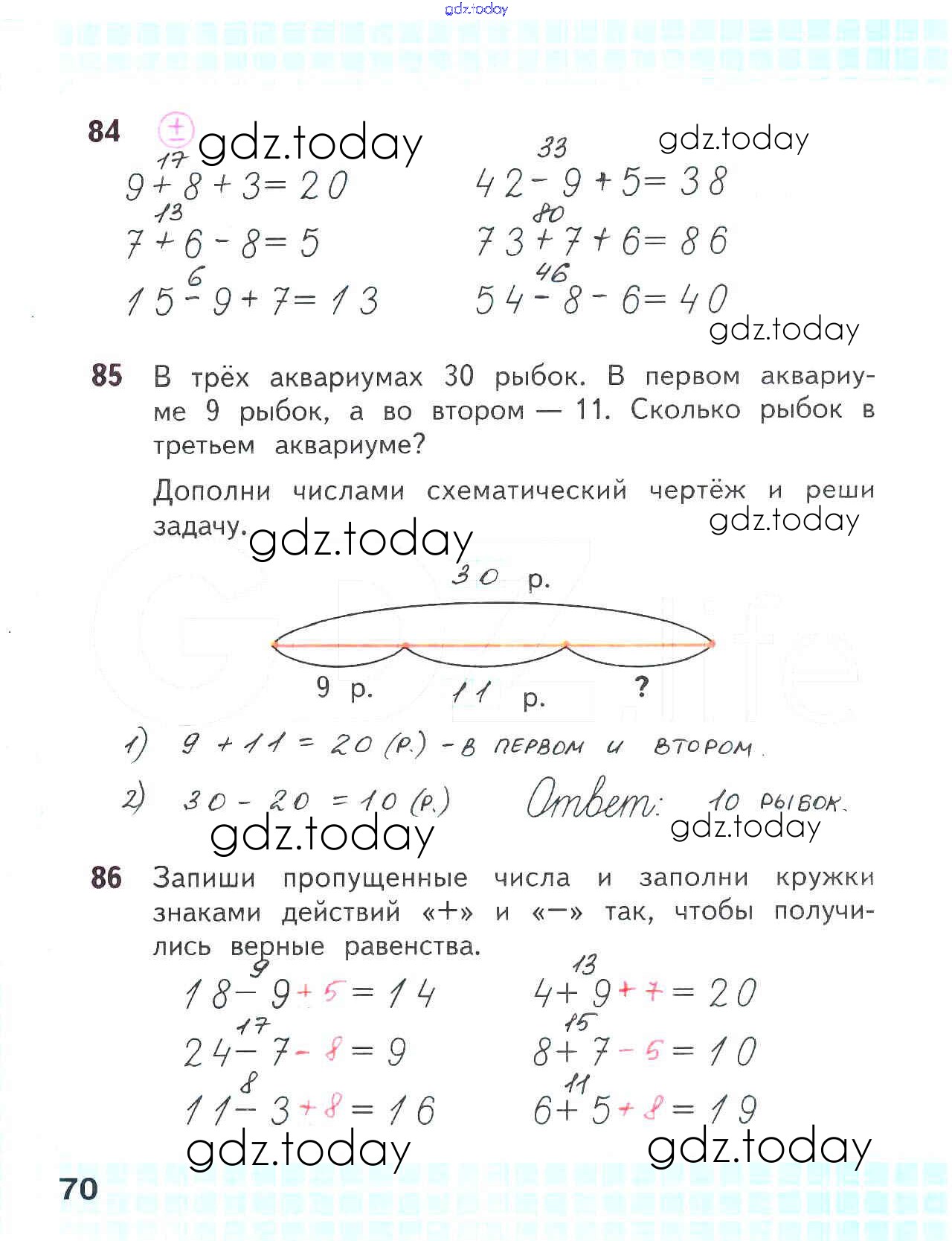 Ответы к Решение к части 2. Страницы 70 Рабочей тетради по Математике для 2 класса Волкова, Моро Просвещение Школа России 2016