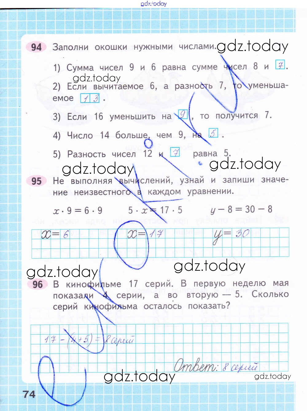 На страницах сайта gdz.today вы найдете учебный и вспомогательный материал, направленный на улучшения знаний школьной программы. ГДЗ - онлайн мир знаний Решение к части 2. Страницы 74 Рабочей тетради по Математике для 2 класса Волкова, Моро Просвещение Школа России 2016
