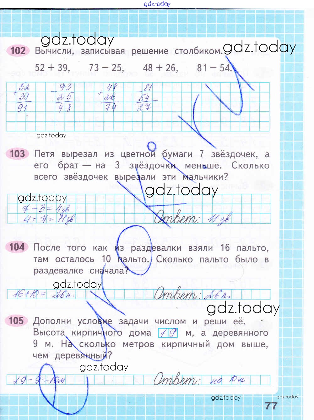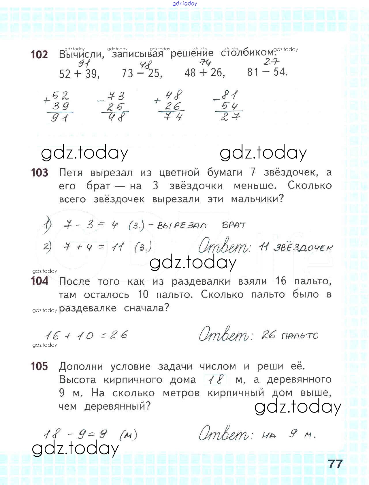 На страницах сайта gdz.today вы найдете учебный и вспомогательный материал, направленный на улучшения знаний школьной программы. ГДЗ - онлайн мир знаний Решение к части 2. Страницы 77 Рабочей тетради по Математике для 2 класса Волкова, Моро Просвещение Школа России 2016