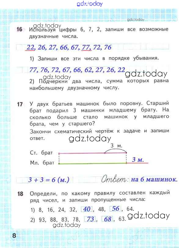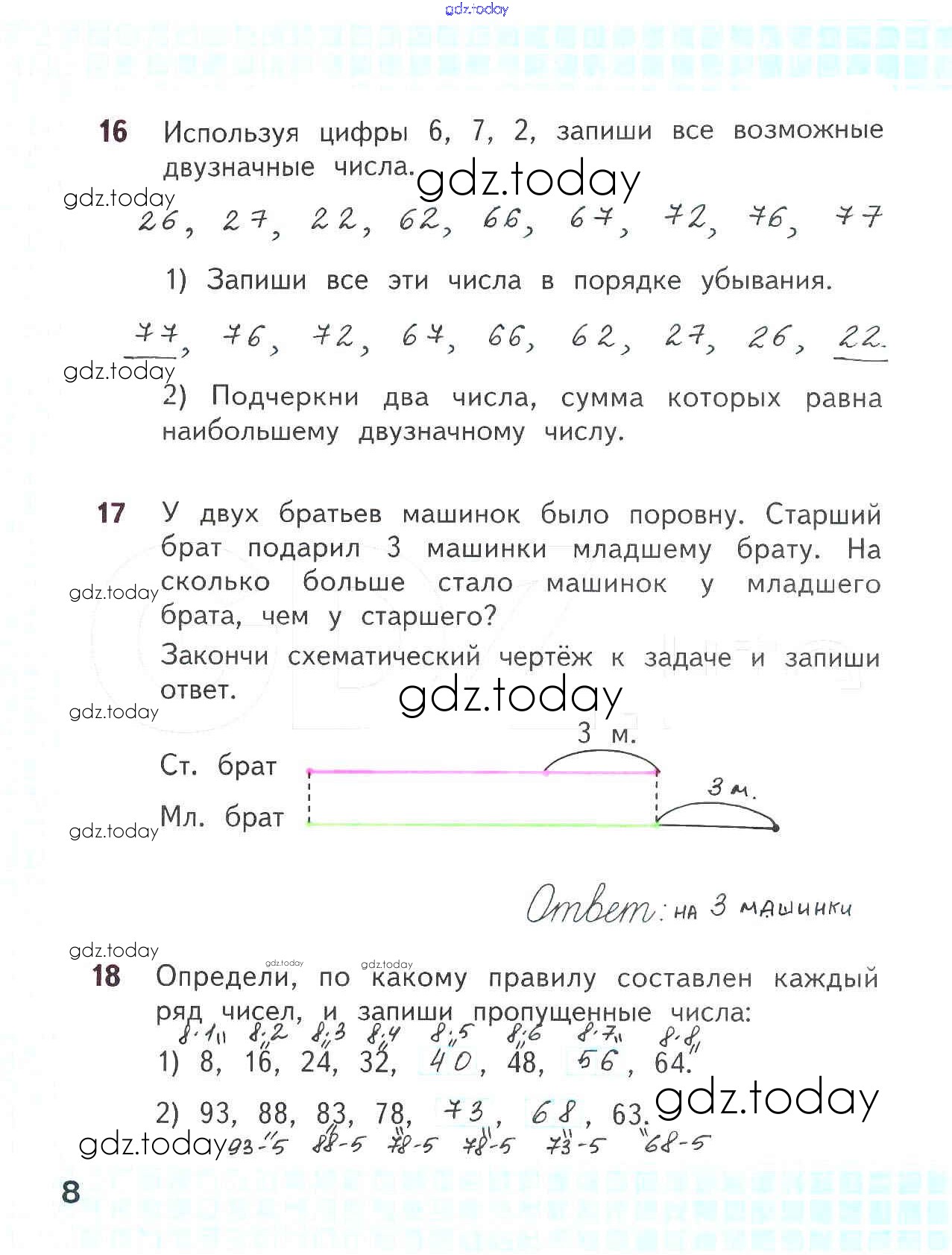 На страницах сайта gdz.today вы найдете учебный и вспомогательный материал, направленный на улучшения знаний школьной программы. ГДЗ - онлайн мир знаний Решение к части 2. Страницы 8 Рабочей тетради по Математике для 2 класса Волкова, Моро Просвещение Школа России 2016