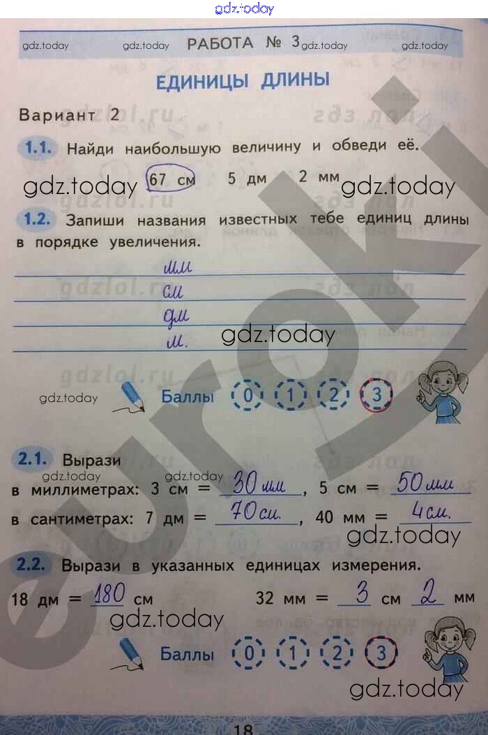 На страницах сайта gdz.today вы найдете учебный и вспомогательный материал, направленный на улучшения знаний школьной программы. ГДЗ - онлайн мир знаний Решение к части 1. Страницы 18 Зачётным работам по Математике для 2 класса Гусева, Курникова Экзамен УМК 2016