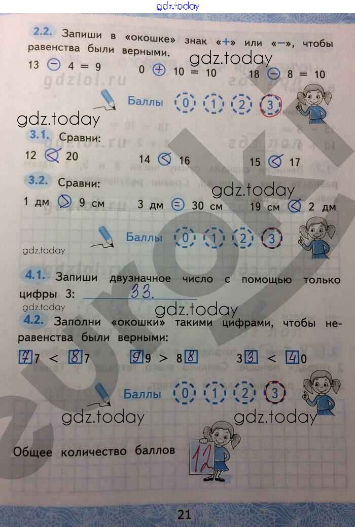 На страницах сайта gdz.today вы найдете учебный и вспомогательный материал, направленный на улучшения знаний школьной программы. ГДЗ - онлайн мир знаний Решение к части 1. Страницы 21 Зачётным работам по Математике для 2 класса Гусева, Курникова Экзамен УМК 2016