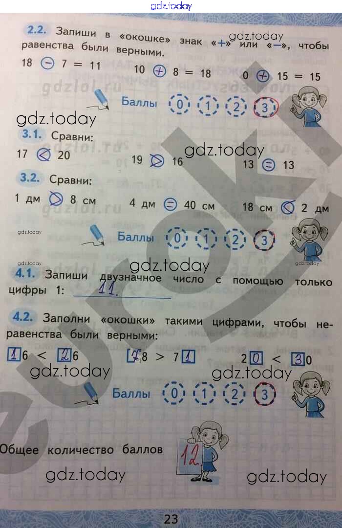 На страницах сайта gdz.today вы найдете учебный и вспомогательный материал, направленный на улучшения знаний школьной программы. ГДЗ - онлайн мир знаний Решение к части 1. Страницы 23 Зачётным работам по Математике для 2 класса Гусева, Курникова Экзамен УМК 2016
