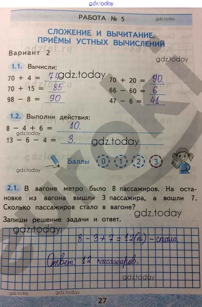 На страницах сайта gdz.today вы найдете учебный и вспомогательный материал, направленный на улучшения знаний школьной программы. ГДЗ - онлайн мир знаний Решение к части 1. Страницы 27 Зачётным работам по Математике для 2 класса Гусева, Курникова Экзамен УМК 2016