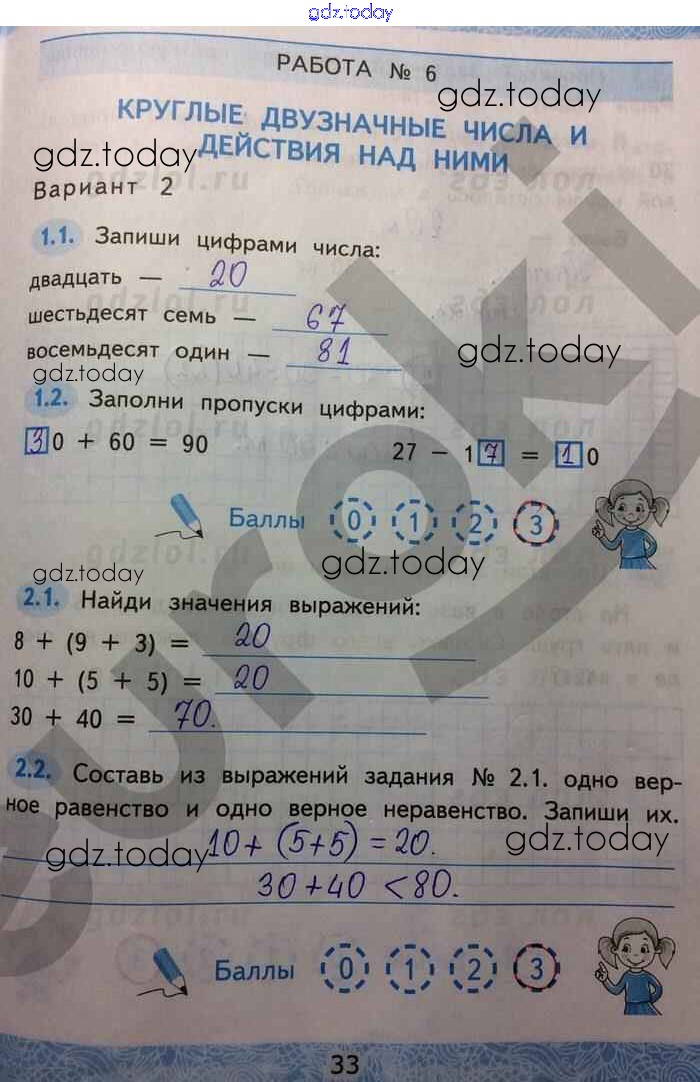 На страницах сайта gdz.today вы найдете учебный и вспомогательный материал, направленный на улучшения знаний школьной программы. ГДЗ - онлайн мир знаний Решение к части 1. Страницы 33 Зачётным работам по Математике для 2 класса Гусева, Курникова Экзамен УМК 2016
