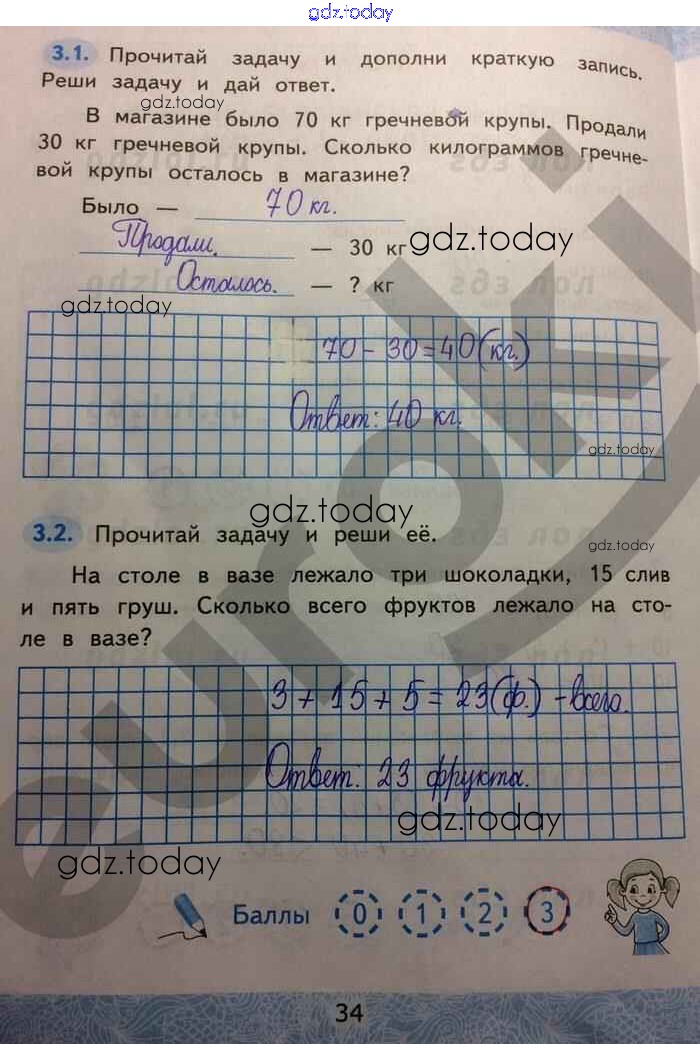 Ответы к Решение к части 1. Страницы 34 Зачётным работам по Математике для 2 класса Гусева, Курникова Экзамен УМК 2016