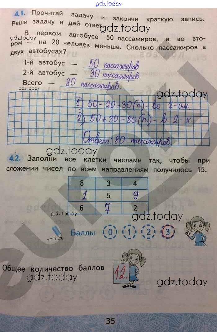 Ответы к Решение к части 1. Страницы 35 Зачётным работам по Математике для 2 класса Гусева, Курникова Экзамен УМК 2016