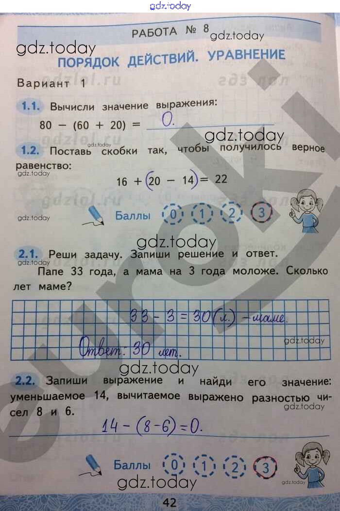 На страницах сайта gdz.today вы найдете учебный и вспомогательный материал, направленный на улучшения знаний школьной программы. ГДЗ - онлайн мир знаний Решение к части 1. Страницы 42 Зачётным работам по Математике для 2 класса Гусева, Курникова Экзамен УМК 2016