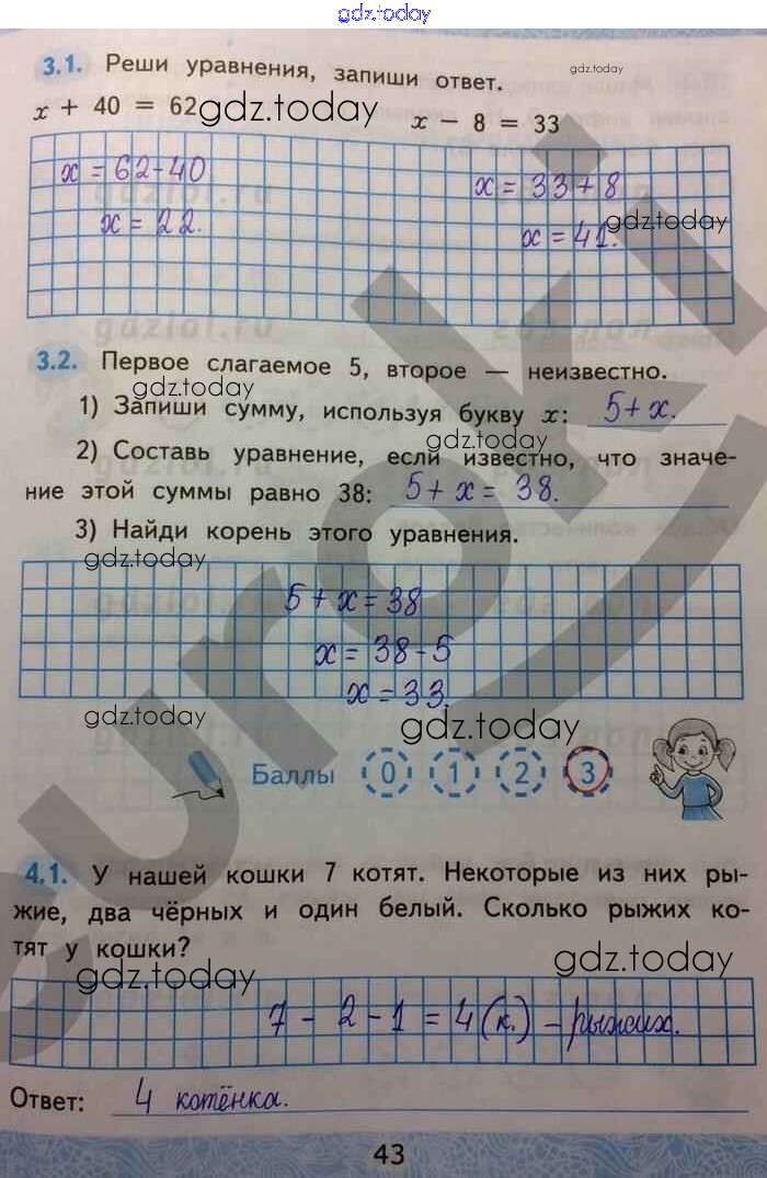 Ответы к Решение к части 1. Страницы 43 Зачётным работам по Математике для 2 класса Гусева, Курникова Экзамен УМК 2016