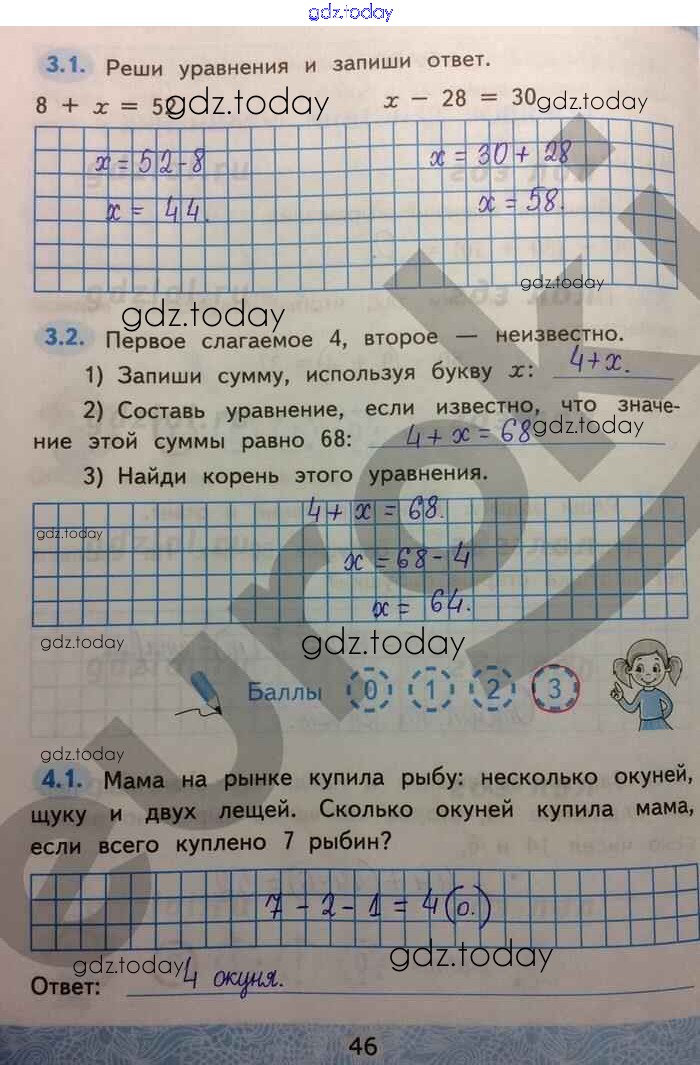 Ответы к Решение к части 1. Страницы 46 Зачётным работам по Математике для 2 класса Гусева, Курникова Экзамен УМК 2016