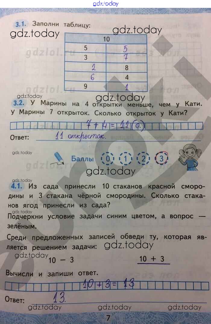 Ответы к Решение к части 1. Страницы 7 Зачётным работам по Математике для 2 класса Гусева, Курникова Экзамен УМК 2016