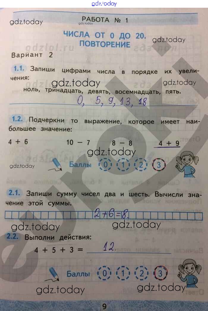 На страницах сайта gdz.today вы найдете учебный и вспомогательный материал, направленный на улучшения знаний школьной программы. ГДЗ - онлайн мир знаний Решение к части 1. Страницы 9 Зачётным работам по Математике для 2 класса Гусева, Курникова Экзамен УМК 2016