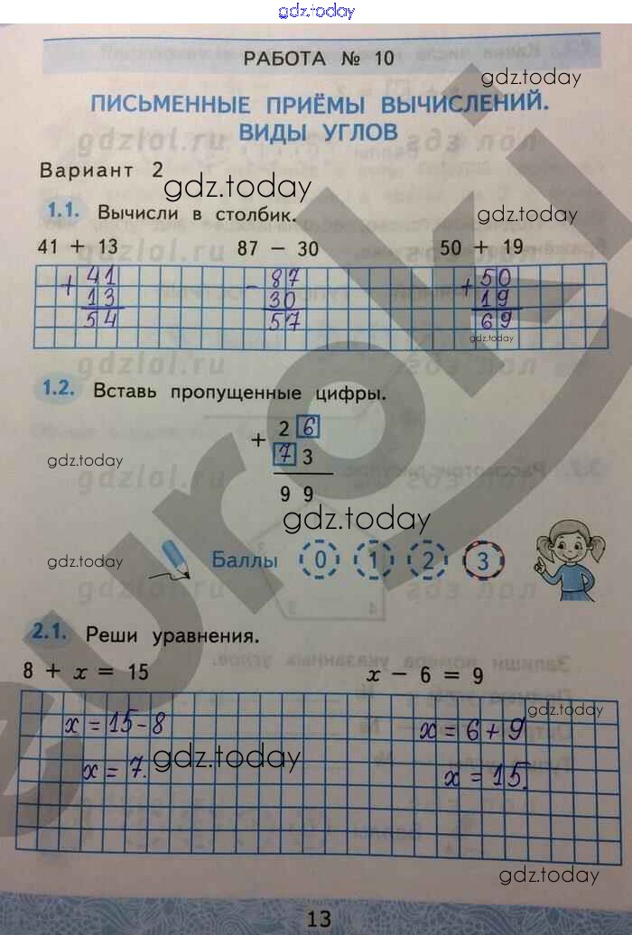 На страницах сайта gdz.today вы найдете учебный и вспомогательный материал, направленный на улучшения знаний школьной программы. ГДЗ - онлайн мир знаний Решение к части 2. Страницы 13 Зачётным работам по Математике для 2 класса Гусева, Курникова Экзамен УМК 2016
