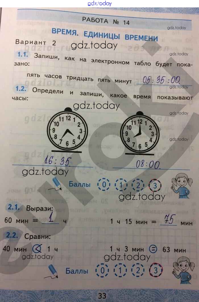 На страницах сайта gdz.today вы найдете учебный и вспомогательный материал, направленный на улучшения знаний школьной программы. ГДЗ - онлайн мир знаний Решение к части 2. Страницы 33 Зачётным работам по Математике для 2 класса Гусева, Курникова Экзамен УМК 2016