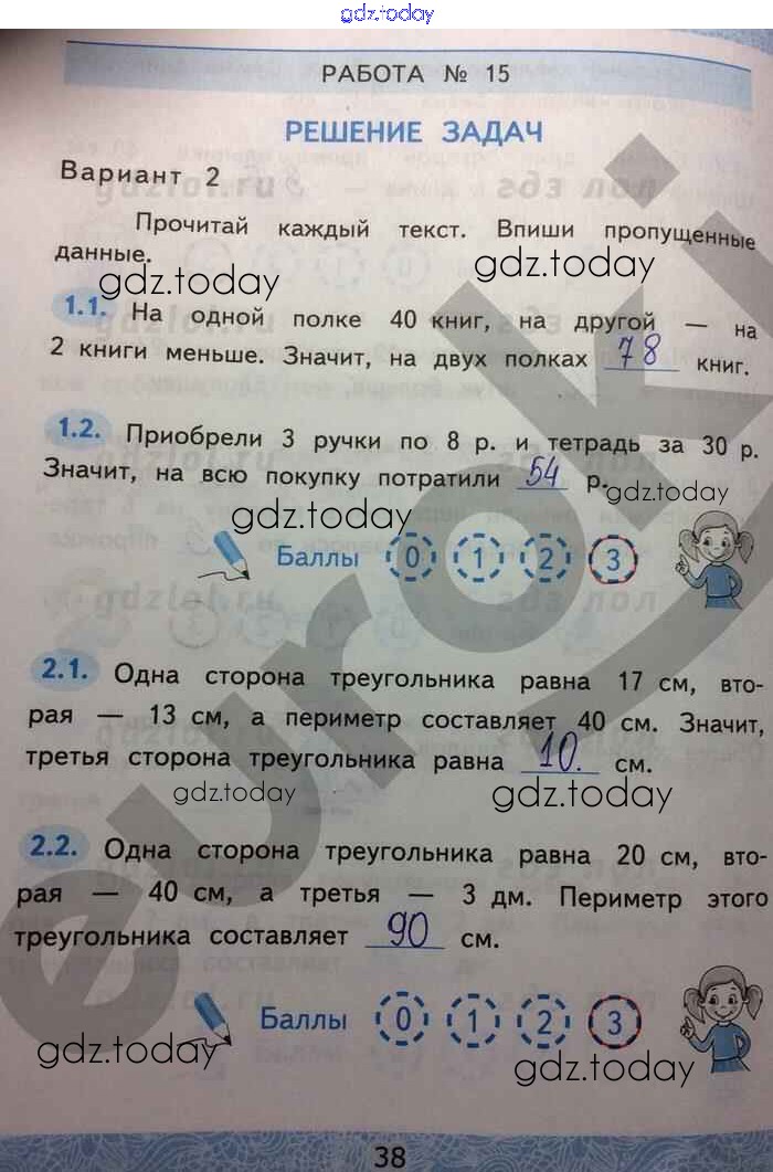 На страницах сайта gdz.today вы найдете учебный и вспомогательный материал, направленный на улучшения знаний школьной программы. ГДЗ - онлайн мир знаний Решение к части 2. Страницы 38 Зачётным работам по Математике для 2 класса Гусева, Курникова Экзамен УМК 2016