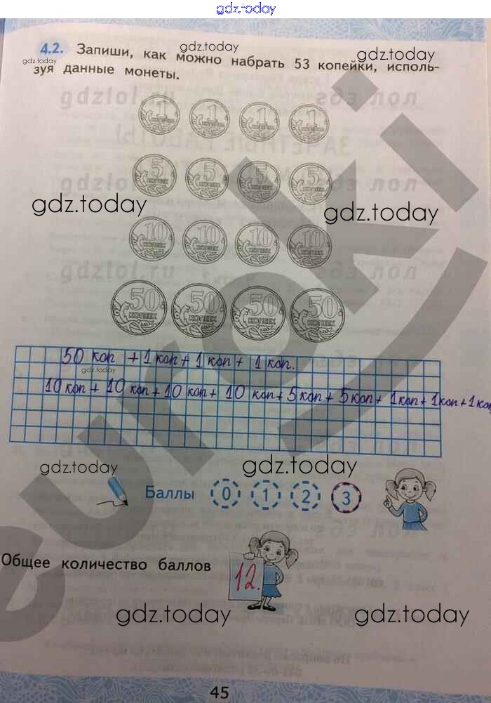 На страницах сайта gdz.today вы найдете учебный и вспомогательный материал, направленный на улучшения знаний школьной программы. ГДЗ - онлайн мир знаний Решение к части 2. Страницы 45 Зачётным работам по Математике для 2 класса Гусева, Курникова Экзамен УМК 2016