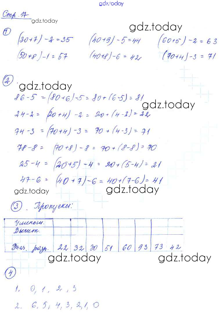 На страницах сайта gdz.today вы найдете учебный и вспомогательный материал, направленный на улучшения знаний школьной программы. ГДЗ - онлайн мир знаний Решение к части 1. Страницы 17 Тетради для самостоятельной работы по Математике для 2 класса Захарова, Юдина Академкнига Перспективная начальная школа 2016