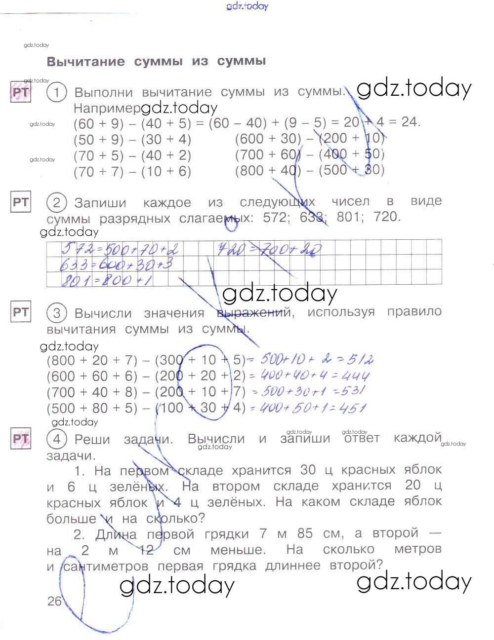 Ответы к Решение к части 1. Страницы 26 Тетради для самостоятельной работы по Математике для 2 класса Захарова, Юдина Академкнига Перспективная начальная школа 2016