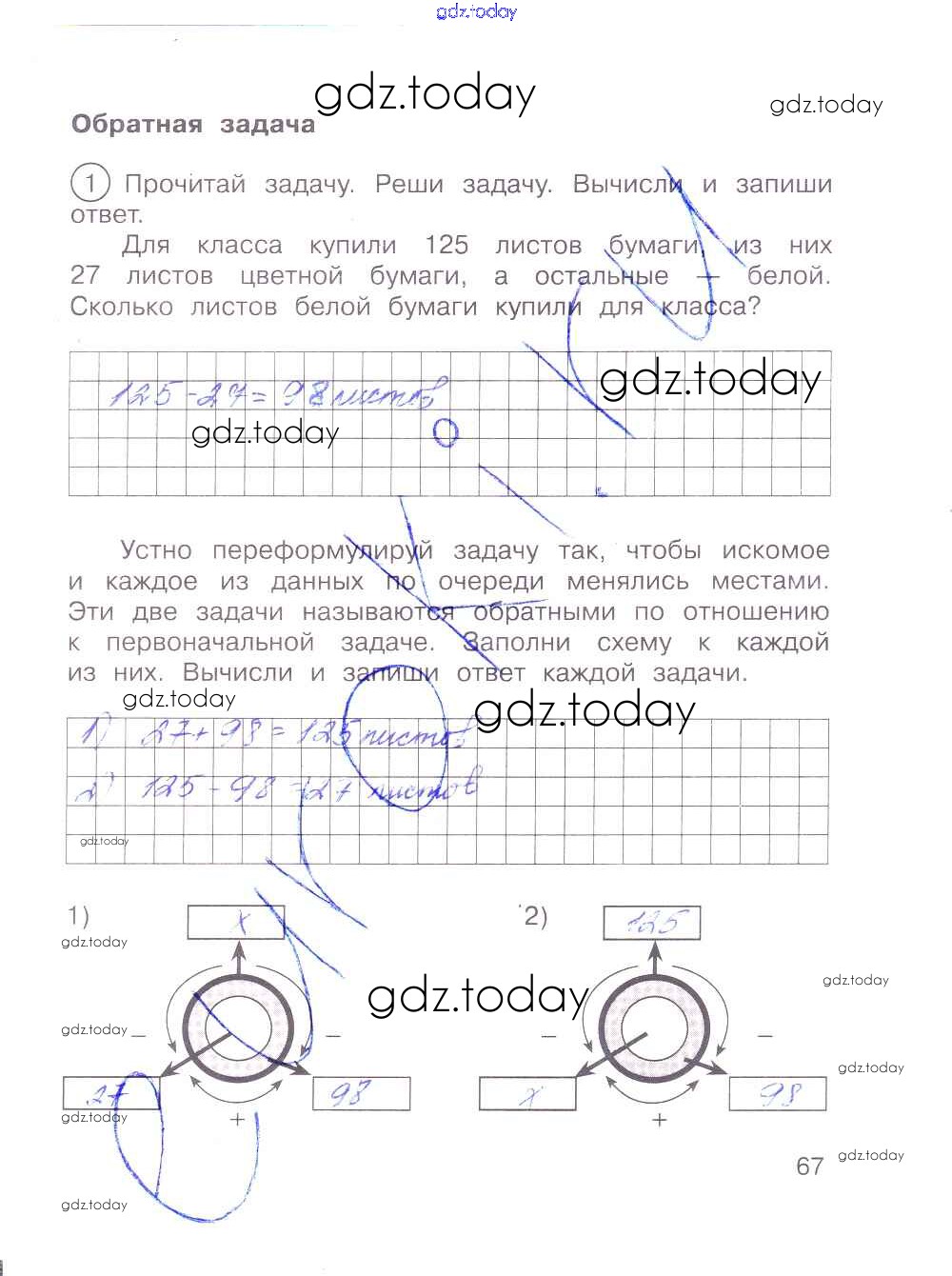 На страницах сайта gdz.today вы найдете учебный и вспомогательный материал, направленный на улучшения знаний школьной программы. ГДЗ - онлайн мир знаний Решение к части 1. Страницы 67 Тетради для самостоятельной работы по Математике для 2 класса Захарова, Юдина Академкнига Перспективная начальная школа 2016
