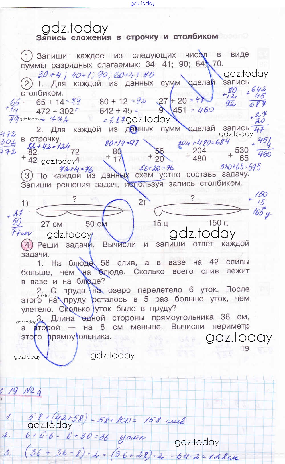 Ответы к Решение к части 2. Страницы 19 Тетради для самостоятельной работы по Математике для 2 класса Захарова, Юдина Академкнига Перспективная начальная школа 2016