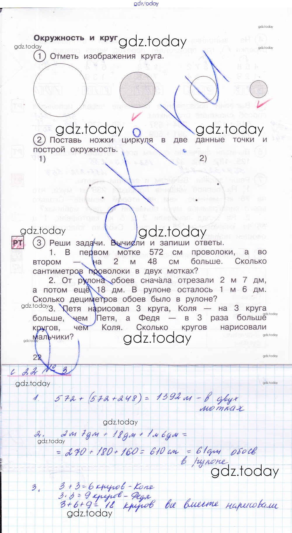 Ответы к Решение к части 2. Страницы 22 Тетради для самостоятельной работы по Математике для 2 класса Захарова, Юдина Академкнига Перспективная начальная школа 2016