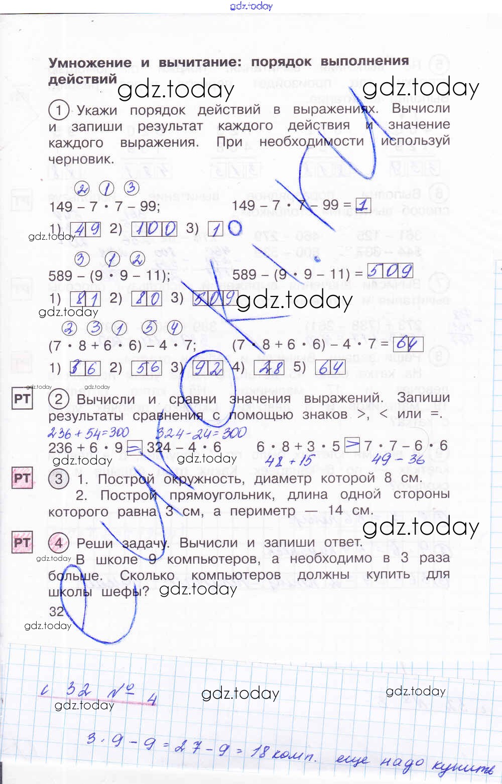 На страницах сайта gdz.today вы найдете учебный и вспомогательный материал, направленный на улучшения знаний школьной программы. ГДЗ - онлайн мир знаний Решение к части 2. Страницы 32 Тетради для самостоятельной работы по Математике для 2 класса Захарова, Юдина Академкнига Перспективная начальная школа 2016